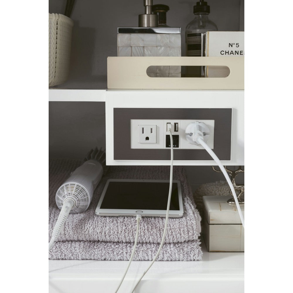 - One faux shagreen in-drawer organizer and one 120 Volt UL rated electrical component with two electrical and two USB (2.0) outlets.