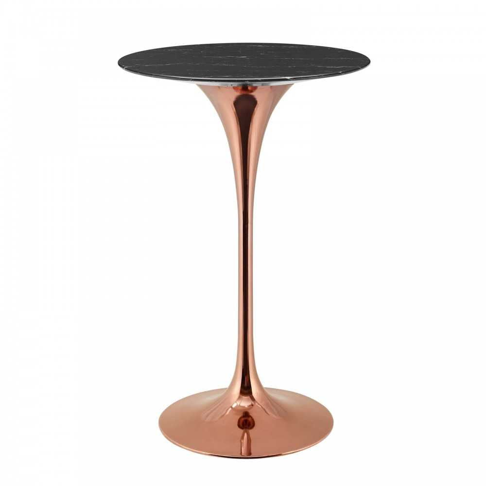 Reflecting a seamless organic shape and timeless form, the Lippa bar table has become a symbol of modernism for over the past 60 years. Before its release, homes were filled with clunky remnants of an industrial age long gone by. But in order to advance into the new world, homes first had to transition from the traditional square table, into a piece that connoted progress. The base and dimensions are true to the original specifications, while the table"™s round artificial marble top features a scratch-resistant finish and the metal tapered base features a polished rose gold finish.