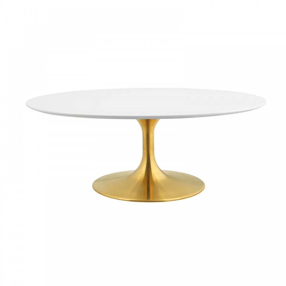 Lippa 42" Oval-Shaped Wood Top Coffee Table, Gold White