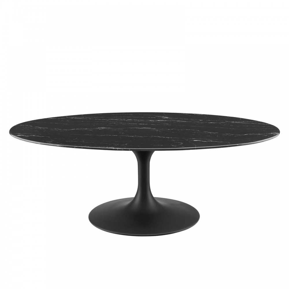Reflecting a seamless organic shape and timeless form, the Lippa Table has become a symbol of modernism for over the past 60 years. Before its release, homes were filled with clunky remnants of an industrial age long gone by. But in order to advance into the new world, homes first had to transition from the traditional square table, into a piece that connoted progress. The base and dimensions are true to the original specifications, while the table"™s oval artificial marble top has a scratch-resistant finish and the metal tapered base features a black powder-coated finish.