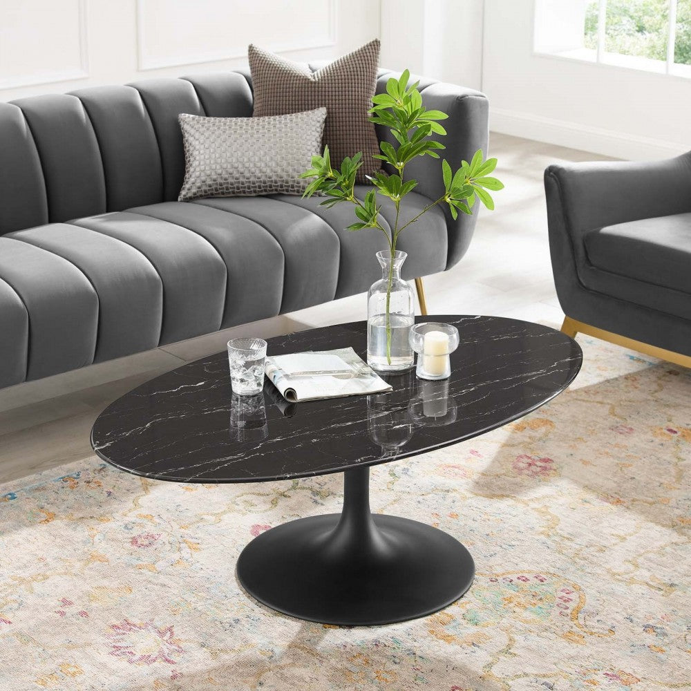 Lippa 48" Oval Artificial Marble Coffee Table, Black Black