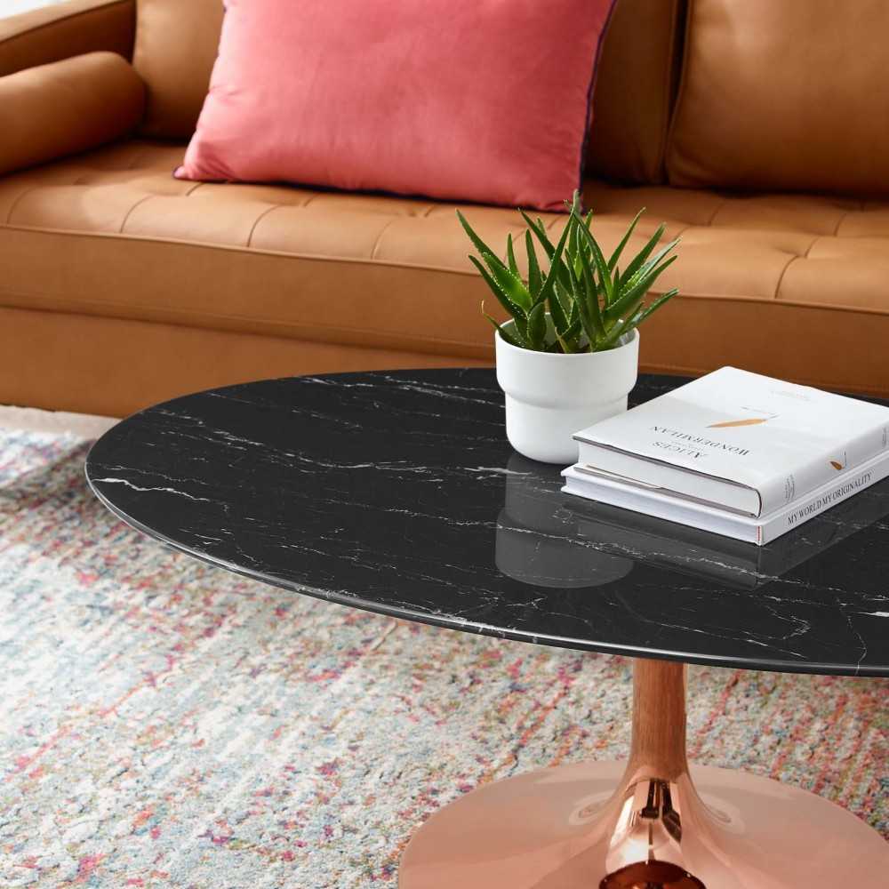 Lippa 48" Oval Artificial Marble Coffee Table, Rose Black