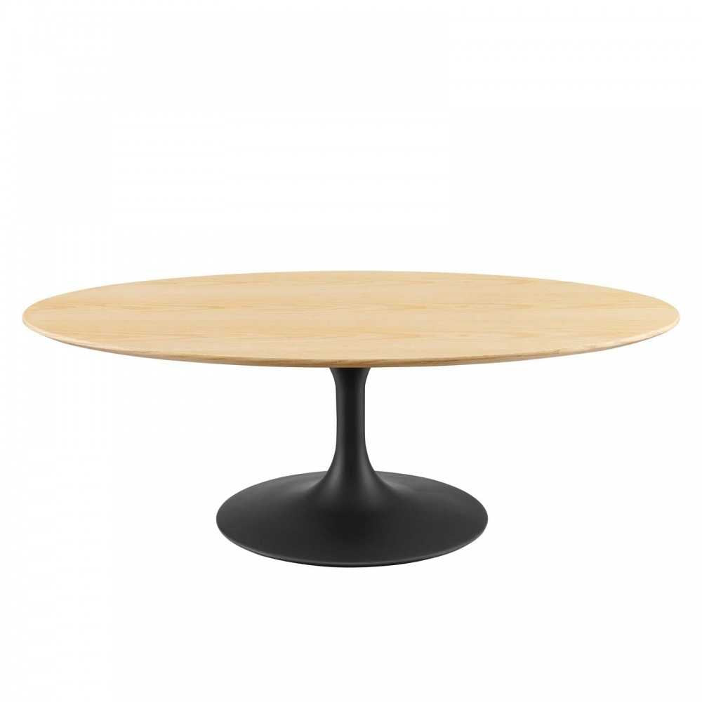 Reflecting a seamless organic shape and timeless form, the Lippa Table has become a symbol of modernism for over the past 60 years. Before its release, homes were filled with clunky remnants of an industrial age long gone by. But in order to advance into the new world, homes first had to transition from the traditional square table, into a piece that connoted progress. The base and dimensions are true to the original specifications, while the table"™s oval MDF top has an easy-to-clean wood grain veneer and the metal tapered base features a black powder-coated finish.