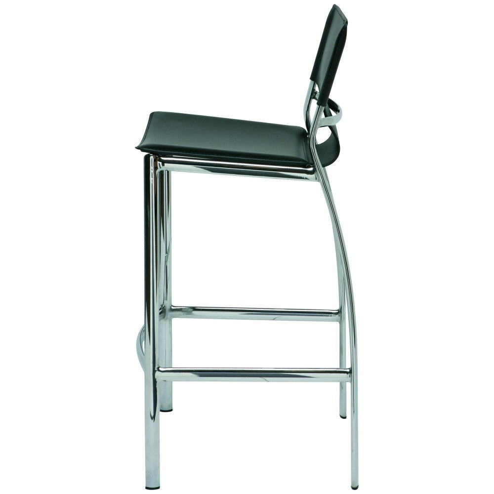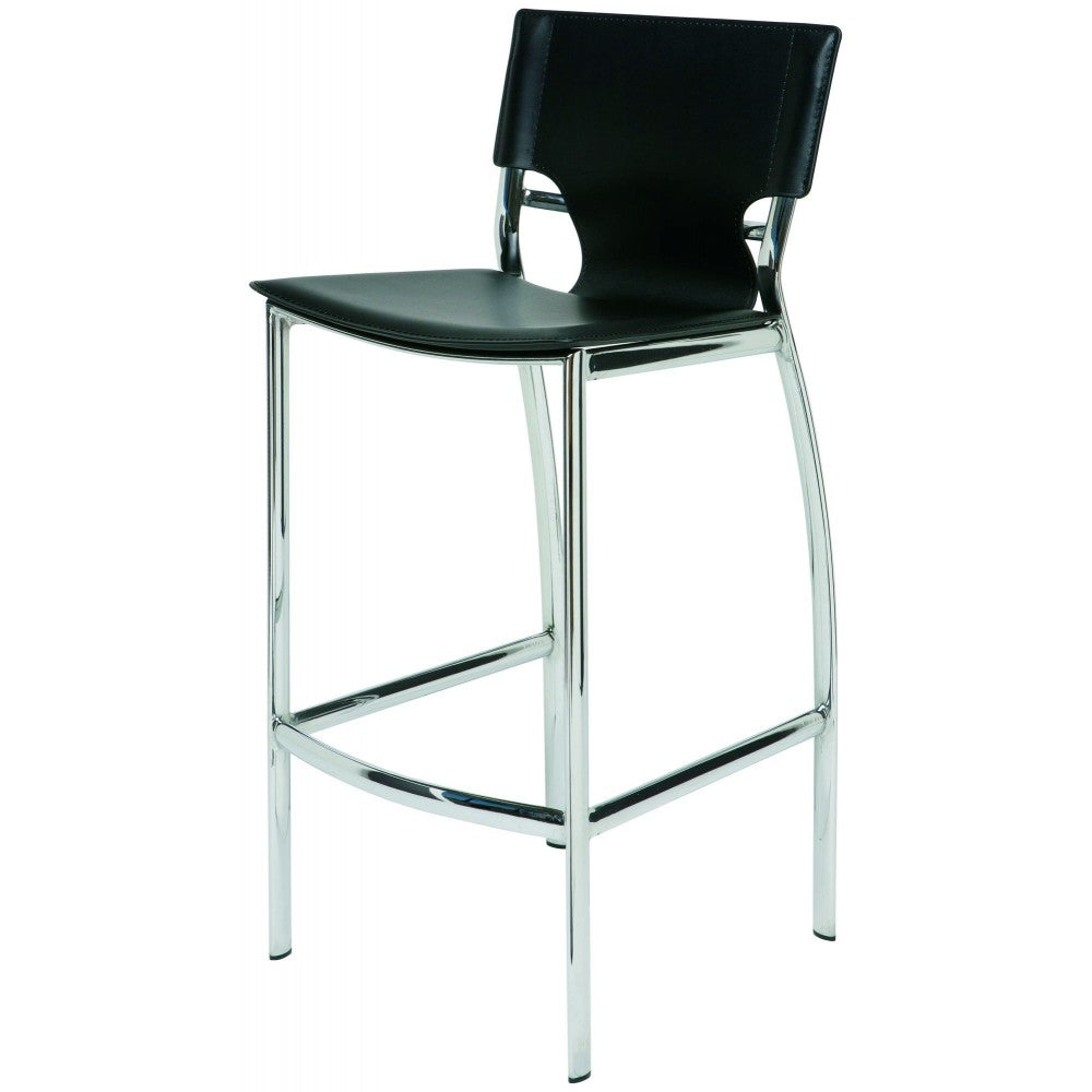 The Lisbon counter stool, a pleasing union of dining comfort and smart contemporary design. Setting the tone, a sturdy, light frame using elliptical steel tubing with a chrome finish. The highlight, an artfully sculpted leather seat and seat back, designed for support and comfort.