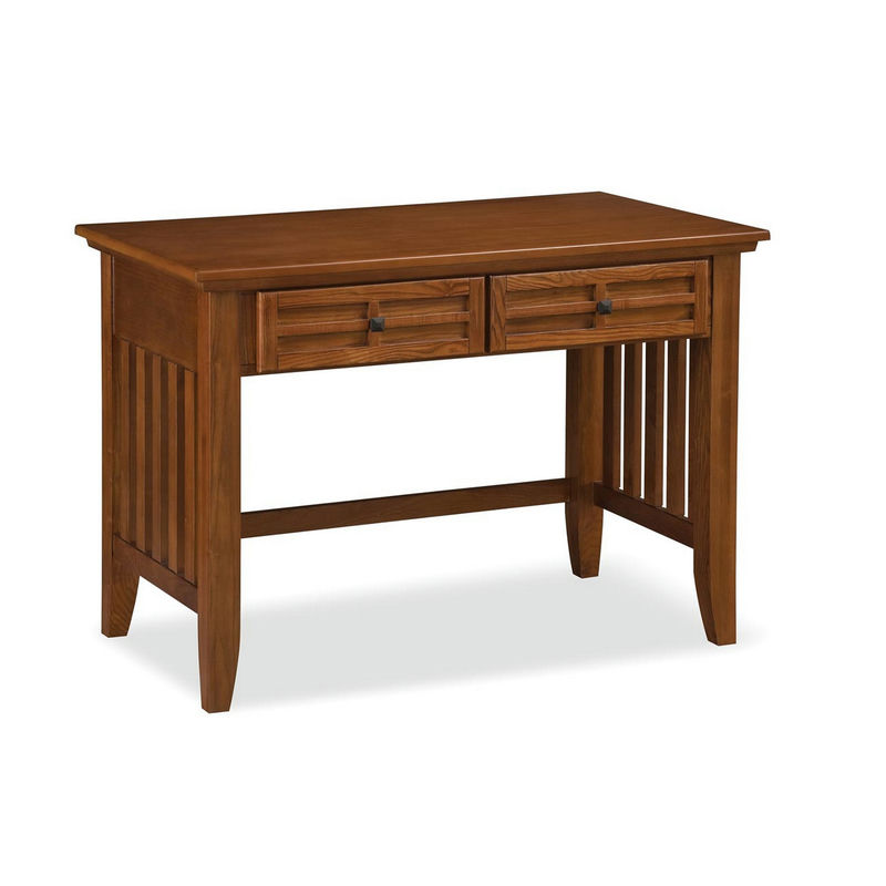 With traditional mission styling, this elegant desk has beautiful details like lattice moldings and gently flared legs. The homestyles Llyod Desk in cottage oak finish is made of solid oak and oak veneers for durability. It has two framed drawers with raised wood, which provide ample space for keeping various belongings. Besides a multi-step finish, this desk has black finished hardware for enhanced visual appeal. This desk will enhance any decor with its gorgeous tones and design, perfect for any room in your house. Comes carefully packaged with all items labeled and easy-to-follow assembly directions. Size: 42"W x 24"D x 30"H.