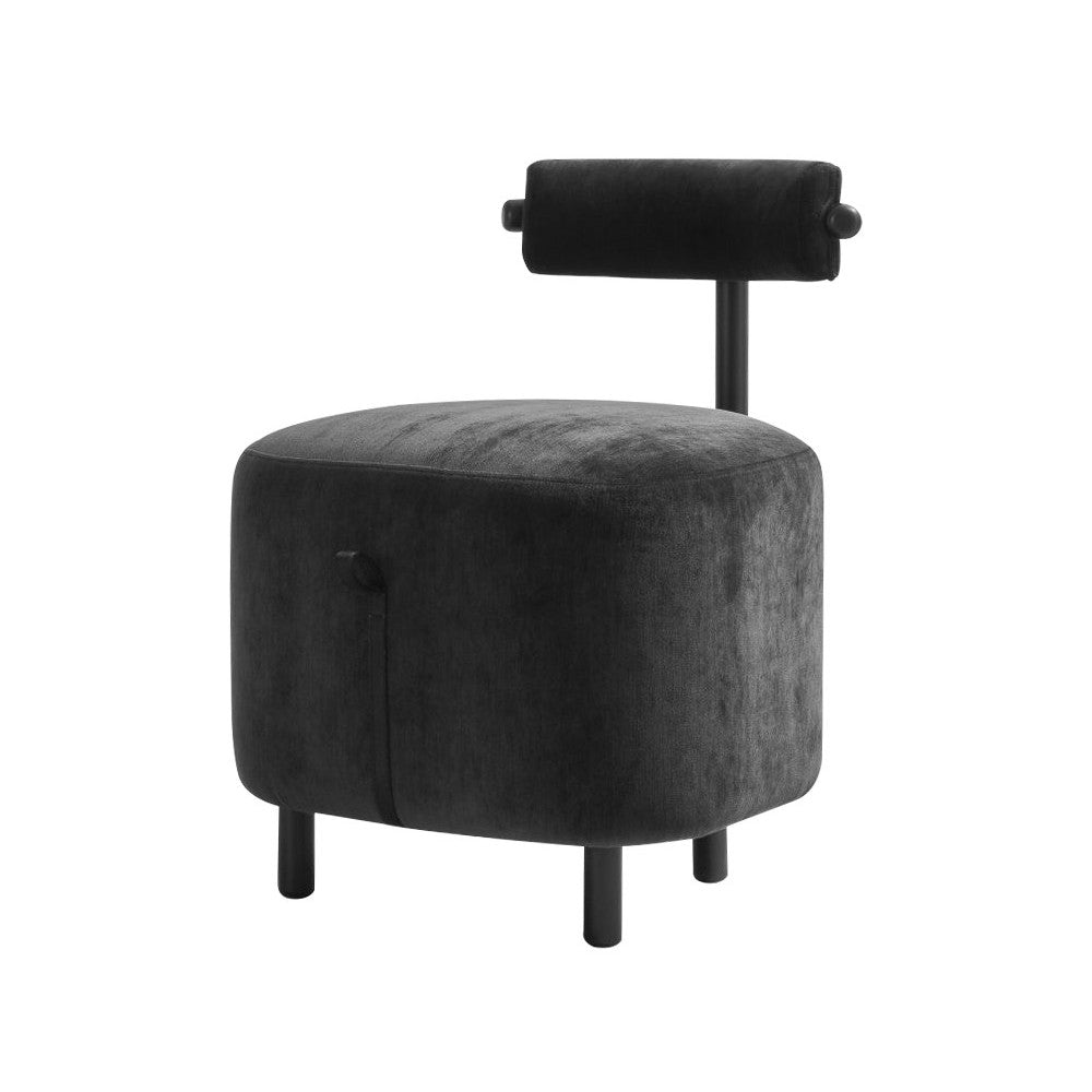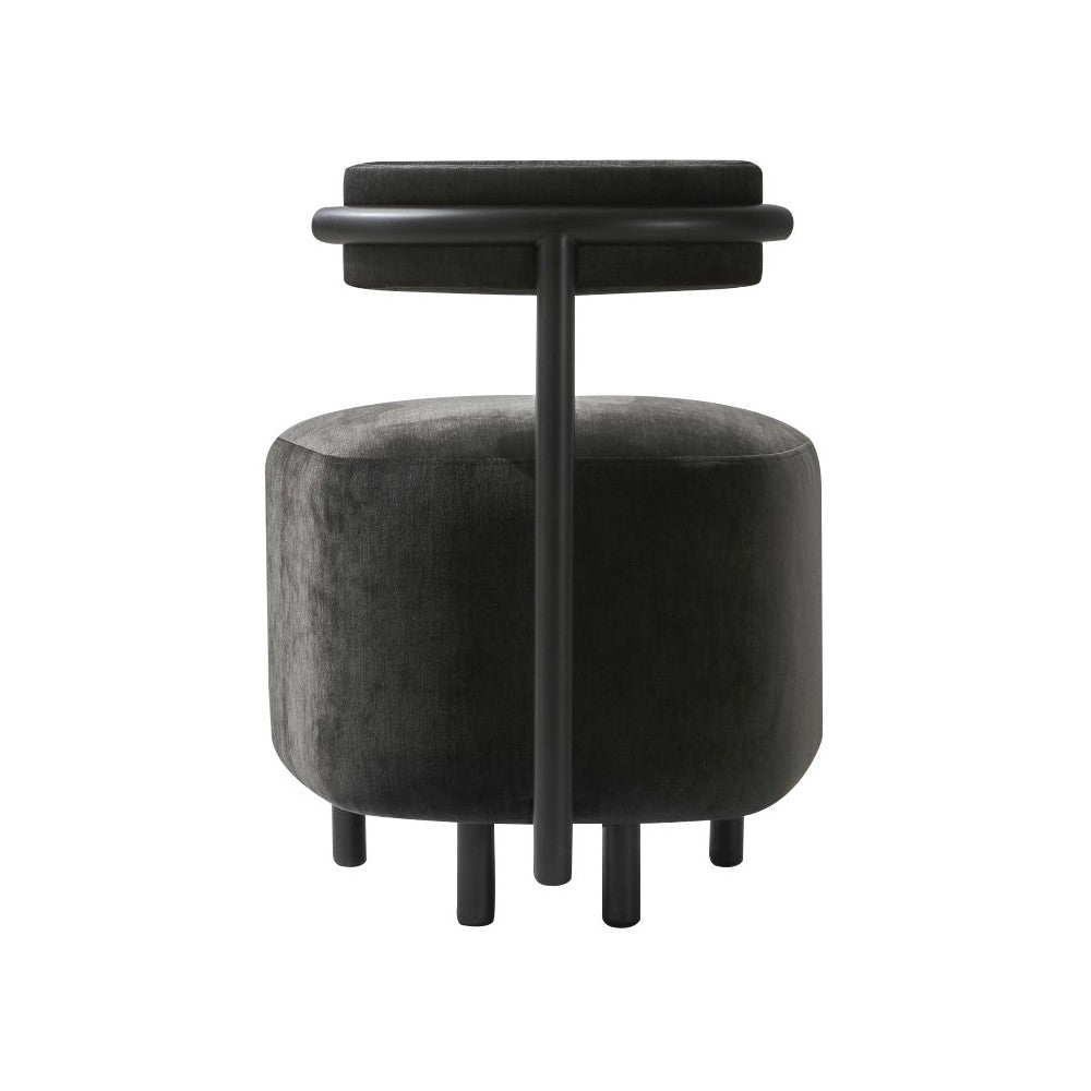 Contemporary Modern Dining Chair from the Loop, featuring mate black steel legs and soft pewter cushioning.