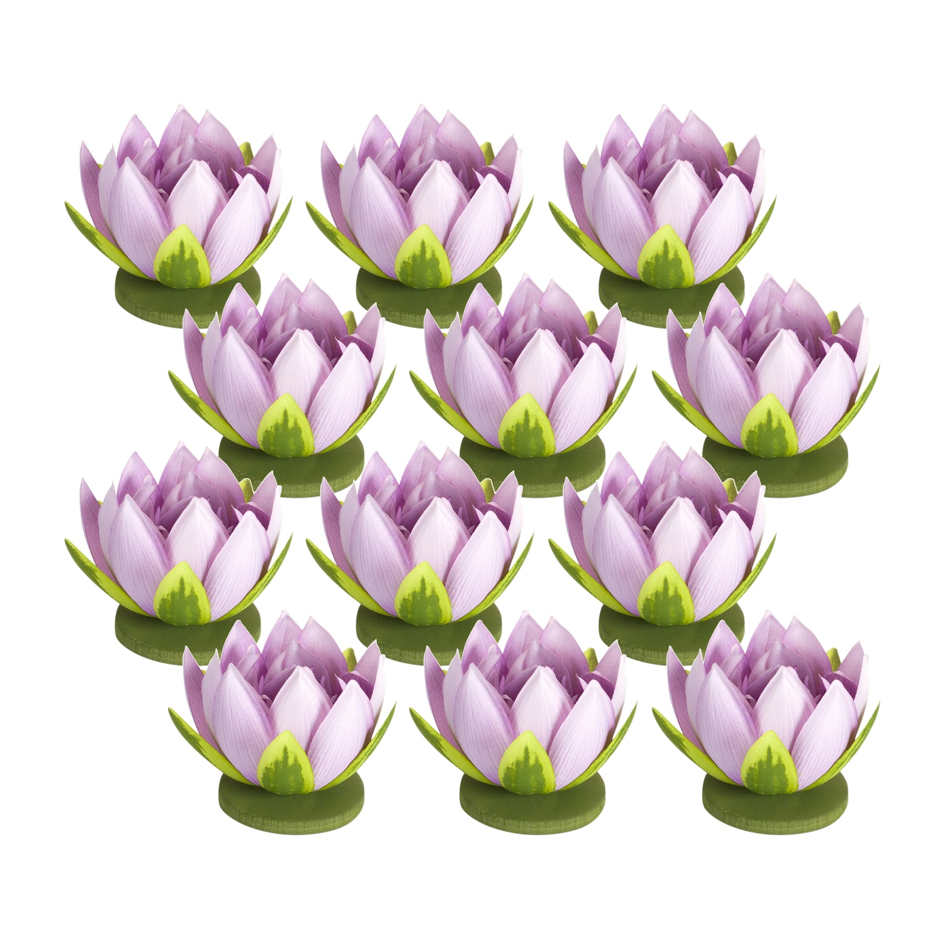 Lotus (Set Of 12) 4" x 4"H Polyester, Purple, Green