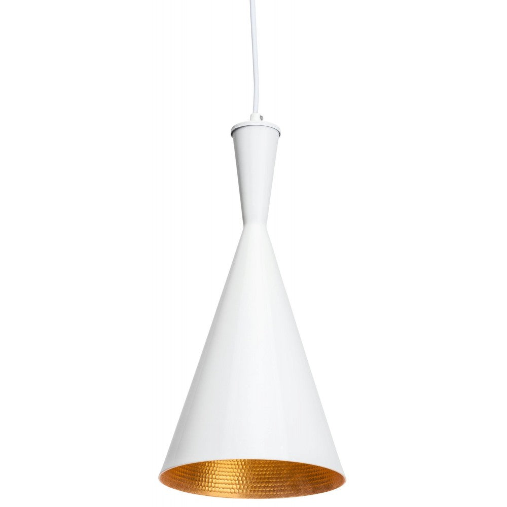 The refined mid-century modern Lue pendant hangs with minimalist poise. The distinctive double taper shade casts a golden directional light projecting an intimate warmth and ambiance.