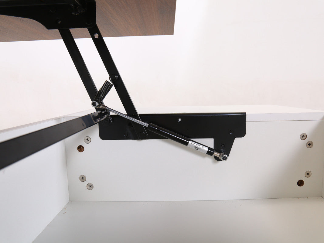 The Luna coffee table features multiple storage spaces. The two drawers, two open shelves on the side, and the hidden storage underneath the table top can store all your media essentials. The table top is supported with a gas spring to make lifting the table top effortless. The clean-cut and low profile is perfect for the minimalist design of any living space.