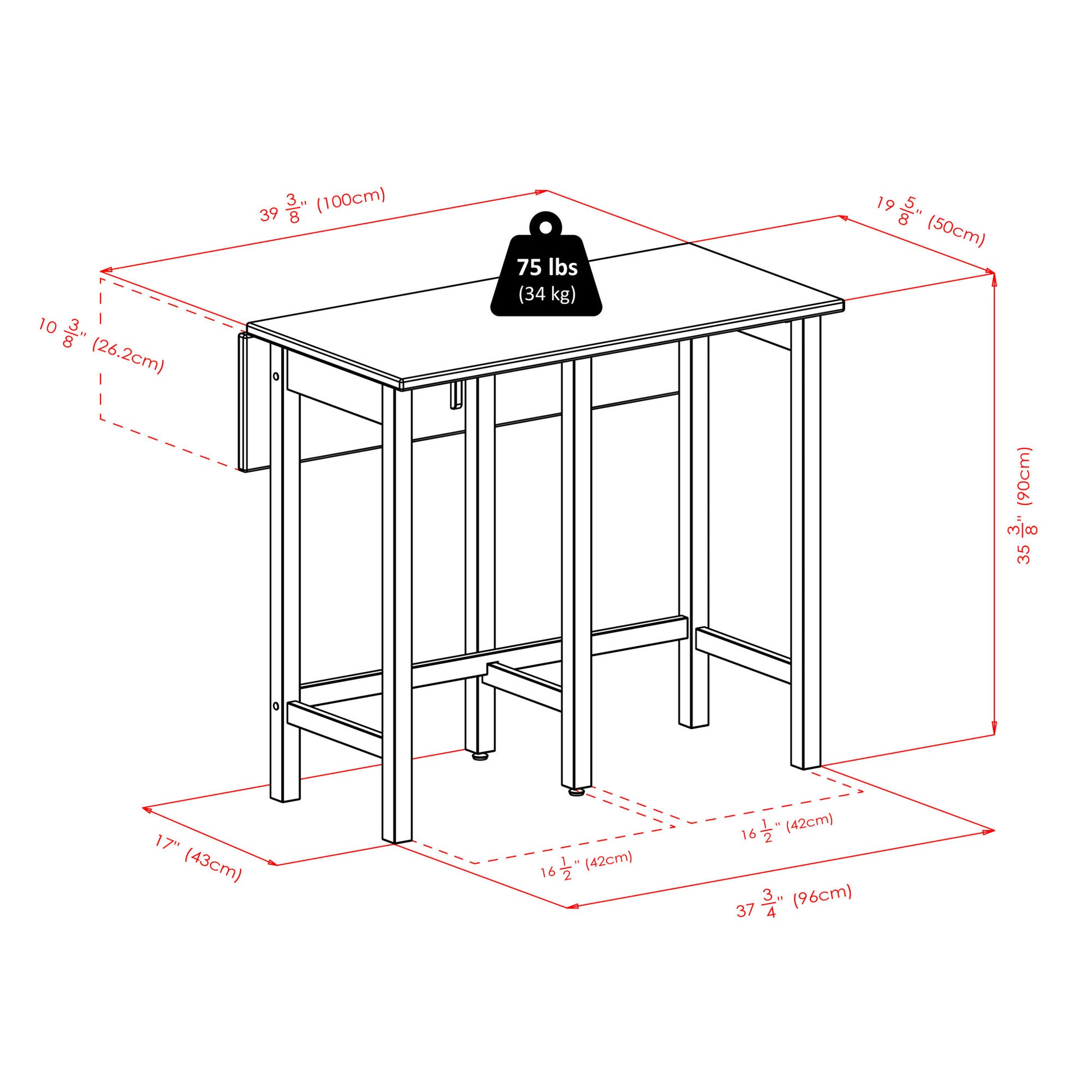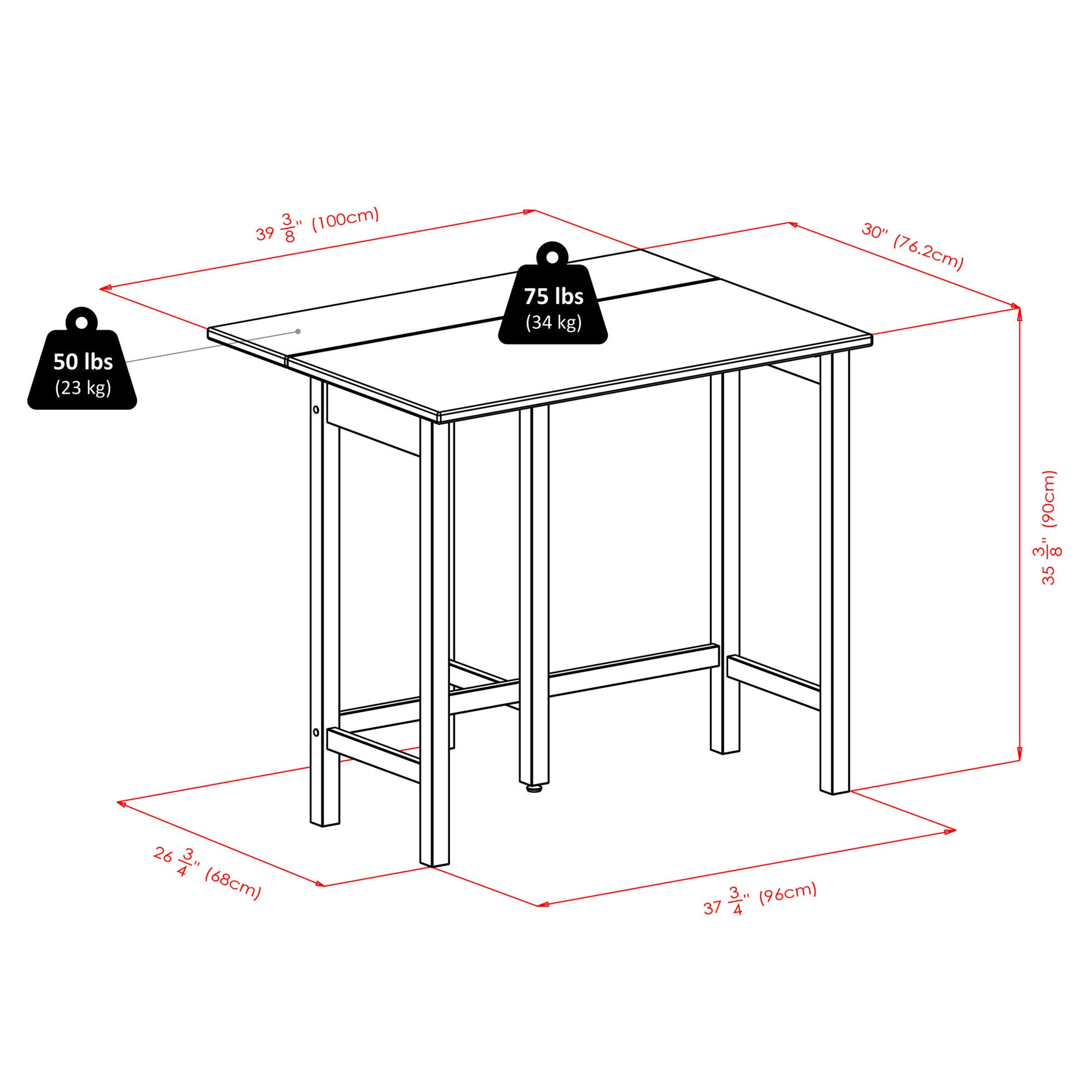 - Open size 39.4"W x 30"D x 35.4"H; Folded size 39.34"W x 20.7"D x 35.4"H; Drop leaf 39.4"W x 10.3"D.