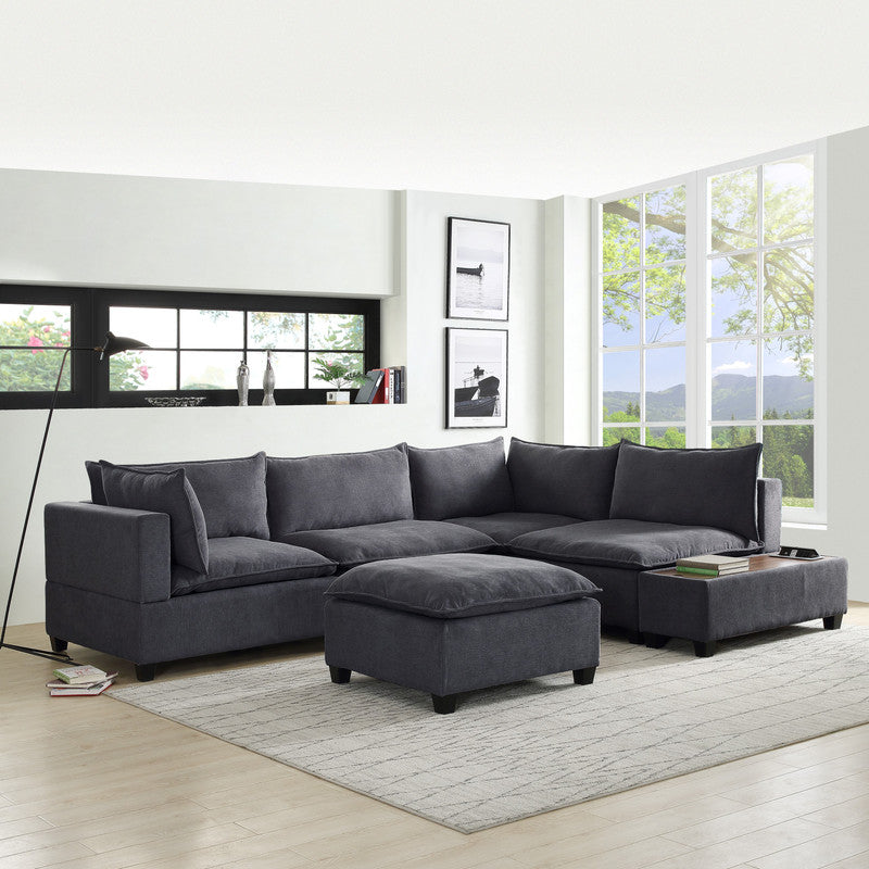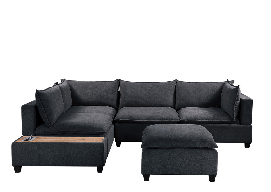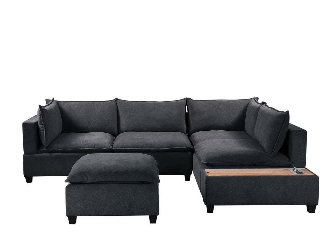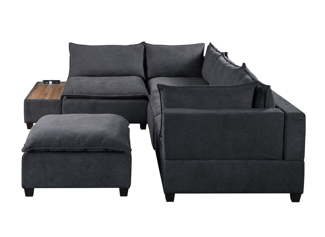 Madison Dark Gray 6 Piece Modular Sectional, Ottoman, USB Storage Console Table