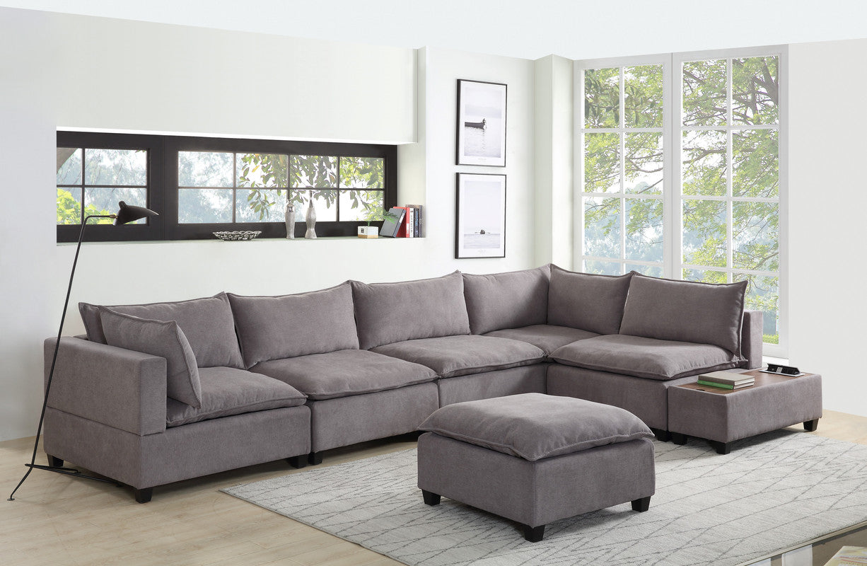 Madison Light Gray 7 Piece Modular Sectional, Ottoman, USB Storage Console Table