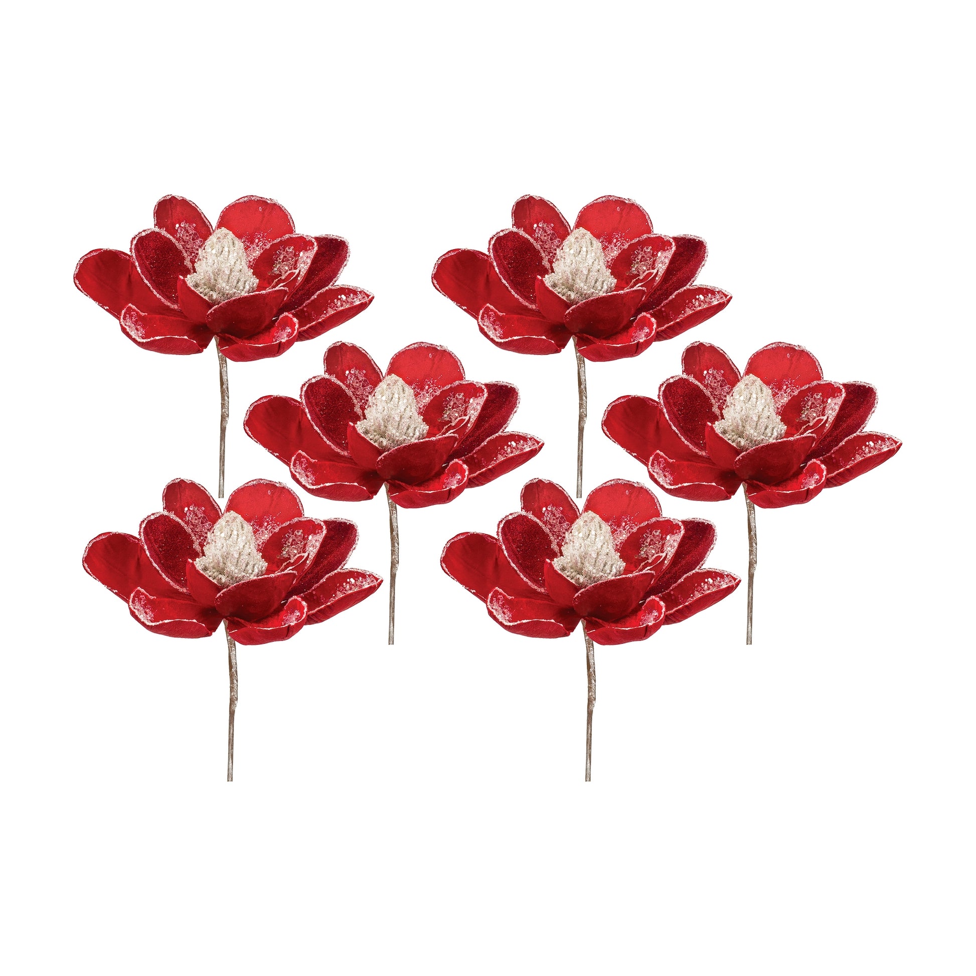 Magnolia Stem (Set Of 6) 20"H Velvet, Red