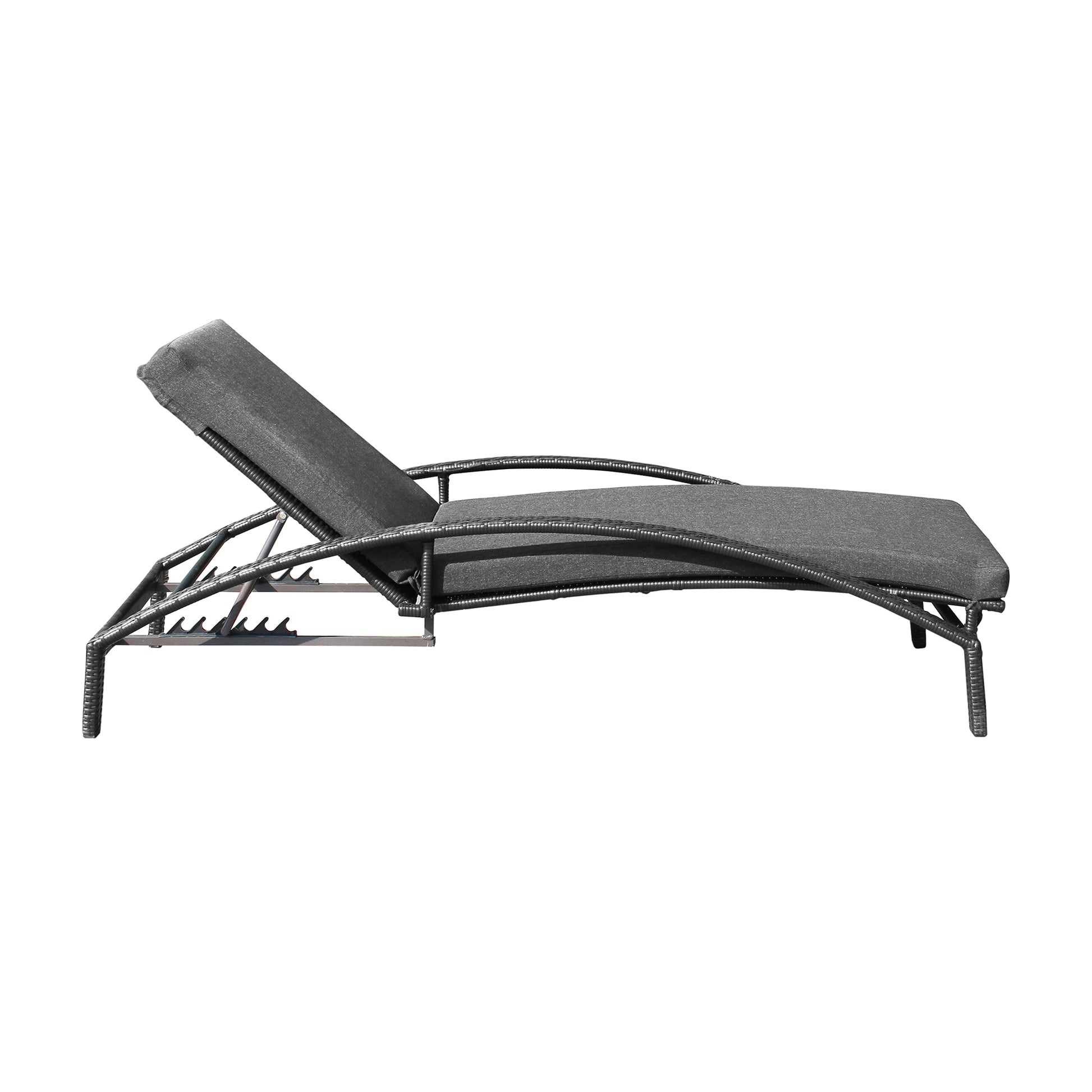 Soak up the sun at any position with the Mahana Outdoor Patio Adjustable Chaise Lounge Chair in Black Aluminum and Wicker. This beautiful chaise lounge outdoor chair is a perfect addition to your pool area, patio, backyard, or screened in porch. With 5 adjustable positions, the Aloha outdoor chaise lounge keeps you in the perfect position to enjoy the weather, lounge, read, or take a mid-day nap. Maintenance and upkeep are easy tasks with this chaise lounge chair, as the cushions feature a convenient zipper closure that makes cover removal and cleaning a breeze. The polyester upholstery on this patio chaise lounge is not permeated easily by water. Secondly, polyester resists the types of molds and mildews that will take root in fabrics made of natural fibers. The weather resistant materials will ensure long lasting use of this pool chaise lounge. The cushions are durable, and resistant to stains, shrinking, and stretching. The frame and beautiful elongated arms are constructed in a beautiful resin wicker weave. Resin wicker is nonporous and dyed all the way through. It is loaded with ultraviolet light treatment so the color stays true and fresh for years to come. Use the Aloha chaise lounge chairs for outside or inside and enjoy the benefits of the adjustable back height, weather resistant materials, and sleek style all year round. The Mahana adjustable beach chair features a black aluminum and wicker frame and a charcoal grey cushion.