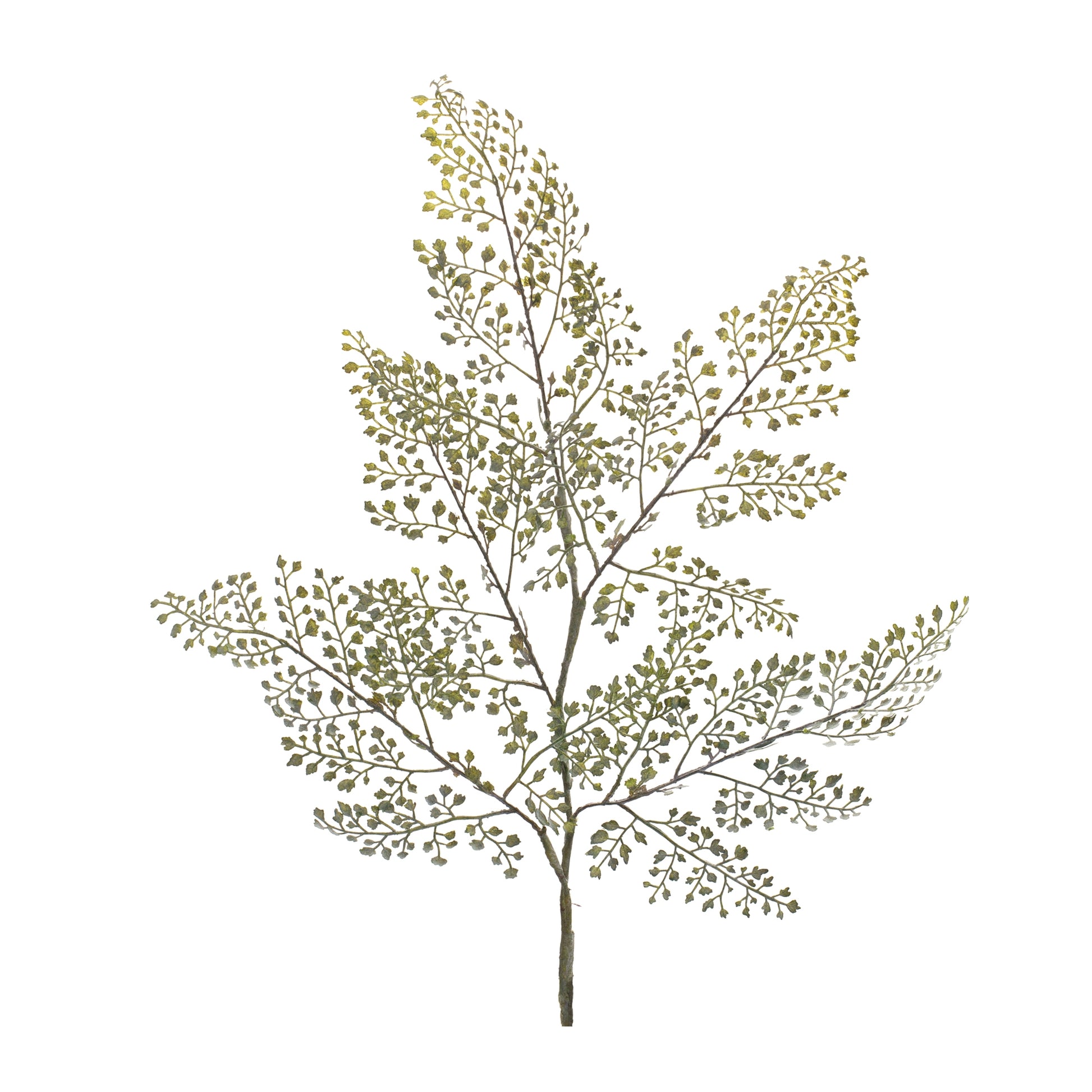 Add a pop of natural color to your home with this beautiful Maiden Hair Fern Spray. Featuring 6 pieces, this set's varigated Maiden Hair Fern Spray foliage is sure to fit in with any style of home decor. The quality plastic leaves are sure to last for seasons to come. Display the set in a vase or decorative container to complete the look.
