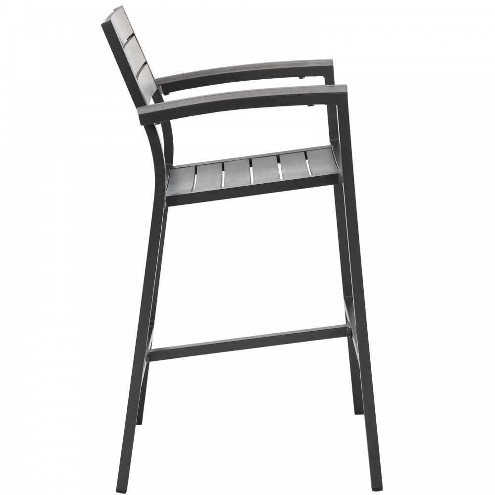 Bordered by the Atlantic Ocean rests the Maine Outdoor Patio Bar Furniture Collection. Distinguished by its synthetic wood grain plank boards, powder-coated aluminum frame, inspired design, and rich organic feel, Maine Outdoor Bar Set stands out as a versatile series for outdoor dining. This contemporary modern patio bar set is perfect for contemporary patios, backyards, poolside, and other outdoor lounge areas.