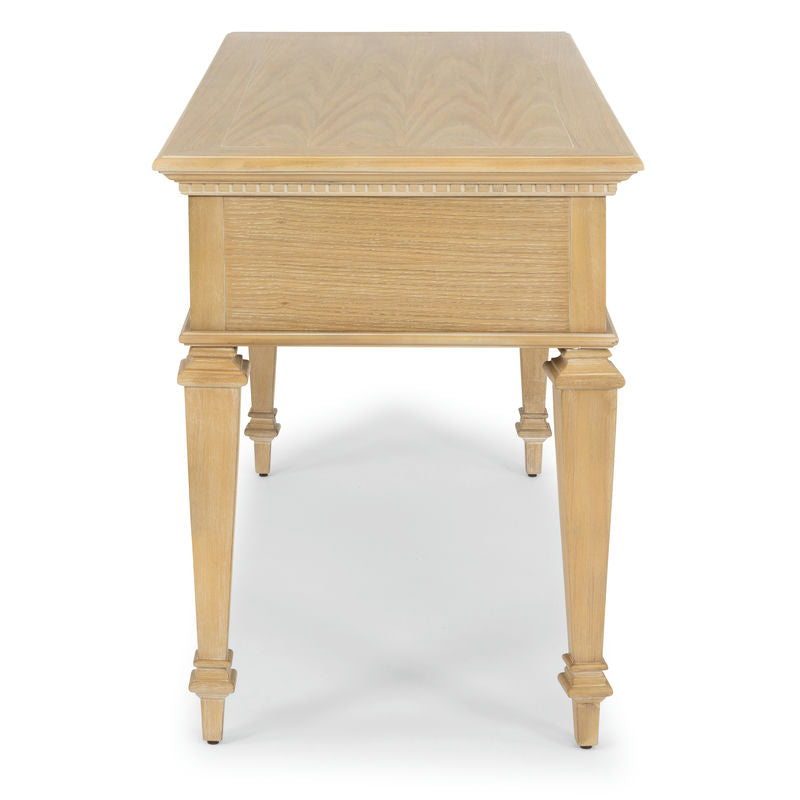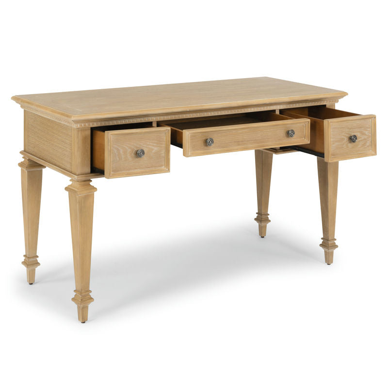 Traditional design gets a contemporary twist with this Homestyles Manor House Writing Desk. This desk is the perfect place to write, surf the web, or just sit and think. The three drawers keep your work area tidy, and offer a convenient place for office supplies. The solid construction provides years of worry-free performance.