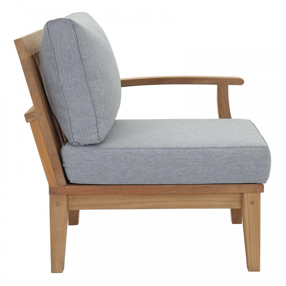 Marina Teak Wood Outdoor Patio Furniture Sofa Sectional set. Marina Patio Furniture series has a seating arrangement perfect for every member of your crew as you breathe the fresh, crisp air of a day spent with friends and family. Known for its natural ability to withstand extreme weather conditions, teak is the wood selection of choice for long-lasting outdoor patio furniture. Now you can enjoy Marina Teak Wood Outdoor Sectional Sofa set with its durable construction and all-weather cushions, alongside a modern design that persistently looks new and welcoming in your patio seating environs. Assembly required.