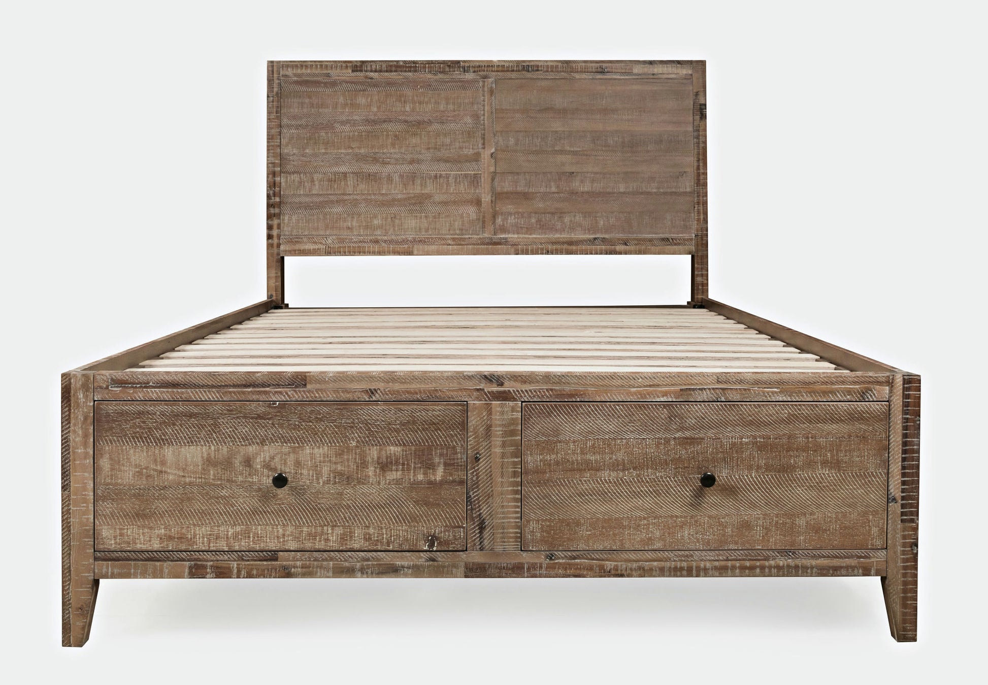 Maxton Coastal Distressed Acacia Queen Size Bed with Storage Drawers - Brown
