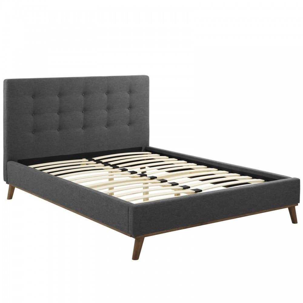 McKenzie Queen Biscuit Tufted Upholstered Fabric Platform Bed, Gray