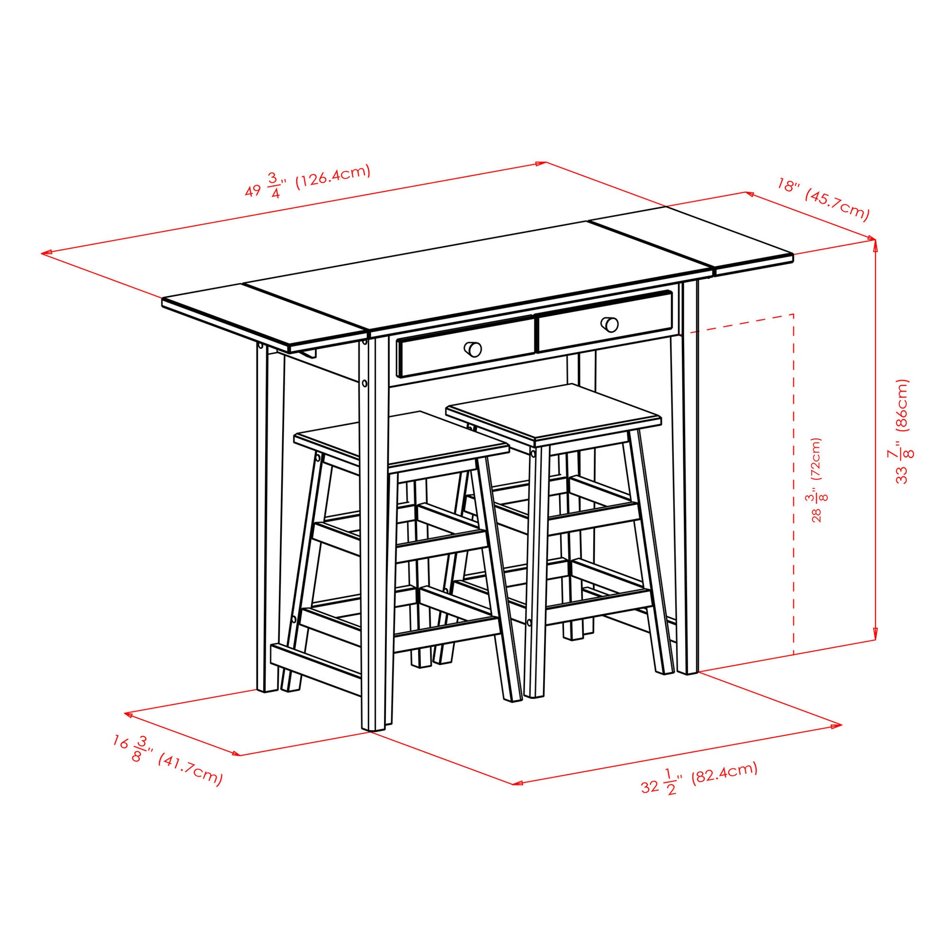 The Mercer Double Drop Leaf Island with Stools will create a perfect breakfast nook spot to enjoy your coffee and bagel. Bring your laptop and extend the leaves to create plenty of room to spread out when working from home. Two drawers for odds and ends and two matching stools finish this charming set.