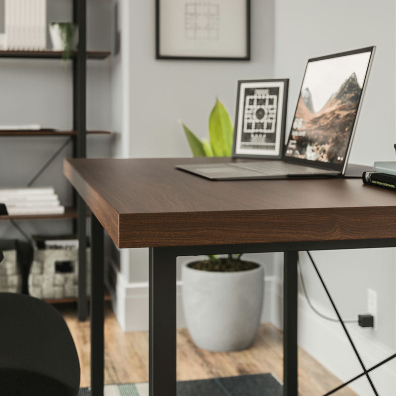 From collaborative areas to home offices, there isn't a workspace that wouldn't benefit from this Homestyles Merge Table Desk. The light scale frame gives it a minimalist appeal, which is complemented nicely by the walnut veneer top that is spacious enough for a laptop and paperwork. The lacquer top coat protects the finish and creates totally worry-free ownership. An integrated cord management tray on the back keeps your space clutter-free.