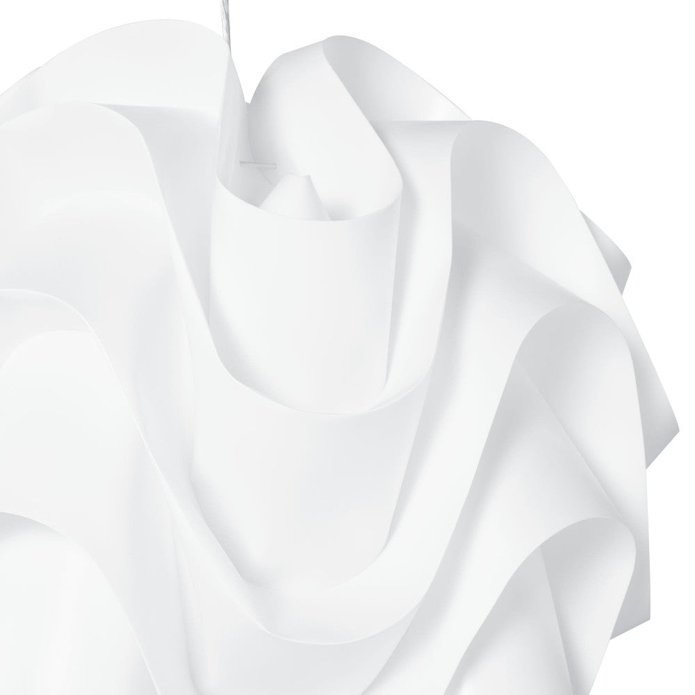 Rhythmic sculpted waves characterize the hypnotic merangue pendant. Casting an inviting glow in corrugated polypropylene and brilliant chromed steel the merangue projects a unique organic warmth and grace. The Merangue has a color matched power cord and chromed steel canopy. The pendant is offered in two sizes 17 inches and 26 inches.