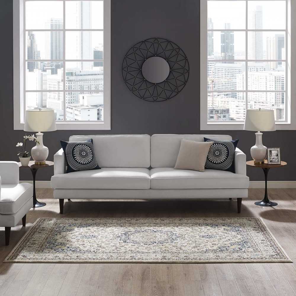 Make a sophisticated statement with the Naria Distressed Vintage Persian Medallion Area Rug. Patterned with an elegant modern design, Naria is a durable machine-woven polypropylene rug. Complete with a jute fabric bottom, Naria enhances traditional and contemporary modern decors while outlasting everyday use. Featuring a vintage oriental design with a high density low pile weave, this non-shedding area rug is a perfect addition to the living room, bedroom, entryway, kitchen, dining room or family room. Naria is a family-friendly stain resistant rug with easy maintenance. Vacuum regularly and spot clean with diluted soap or detergent as needed. Create a comfortable play area for kids and pets while protecting your floor from spills and heavy furniture with this carefree decor update for high traffic areas of your home.