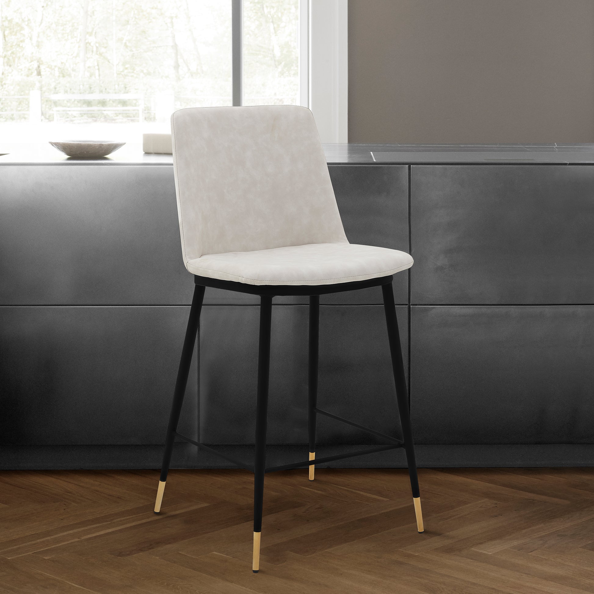 Messina 26" Cream Faux Leather and Metal Counter Height Bar Stool