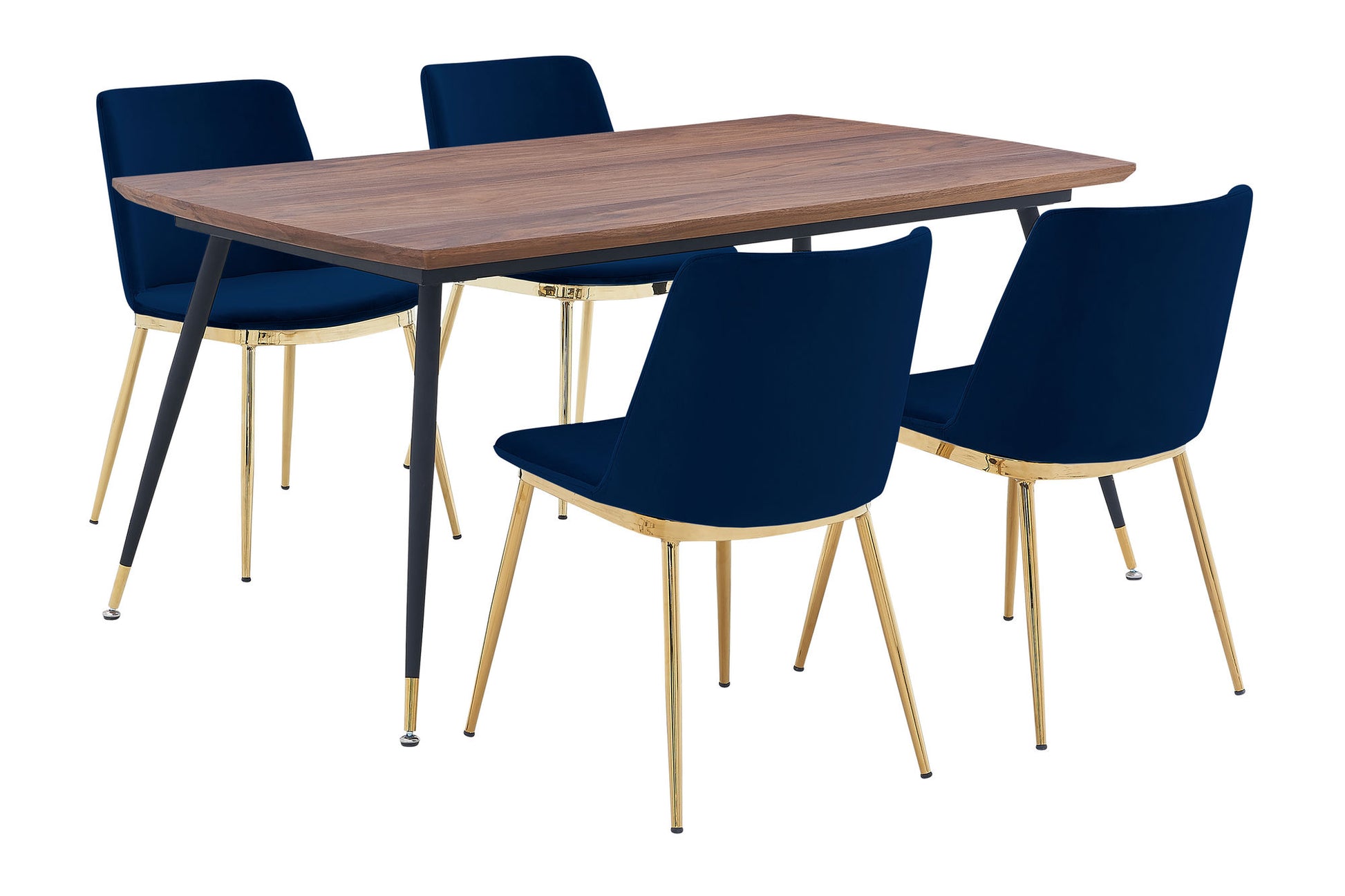 Messina Blue Velvet 5 Piece Rectangular Dining Set