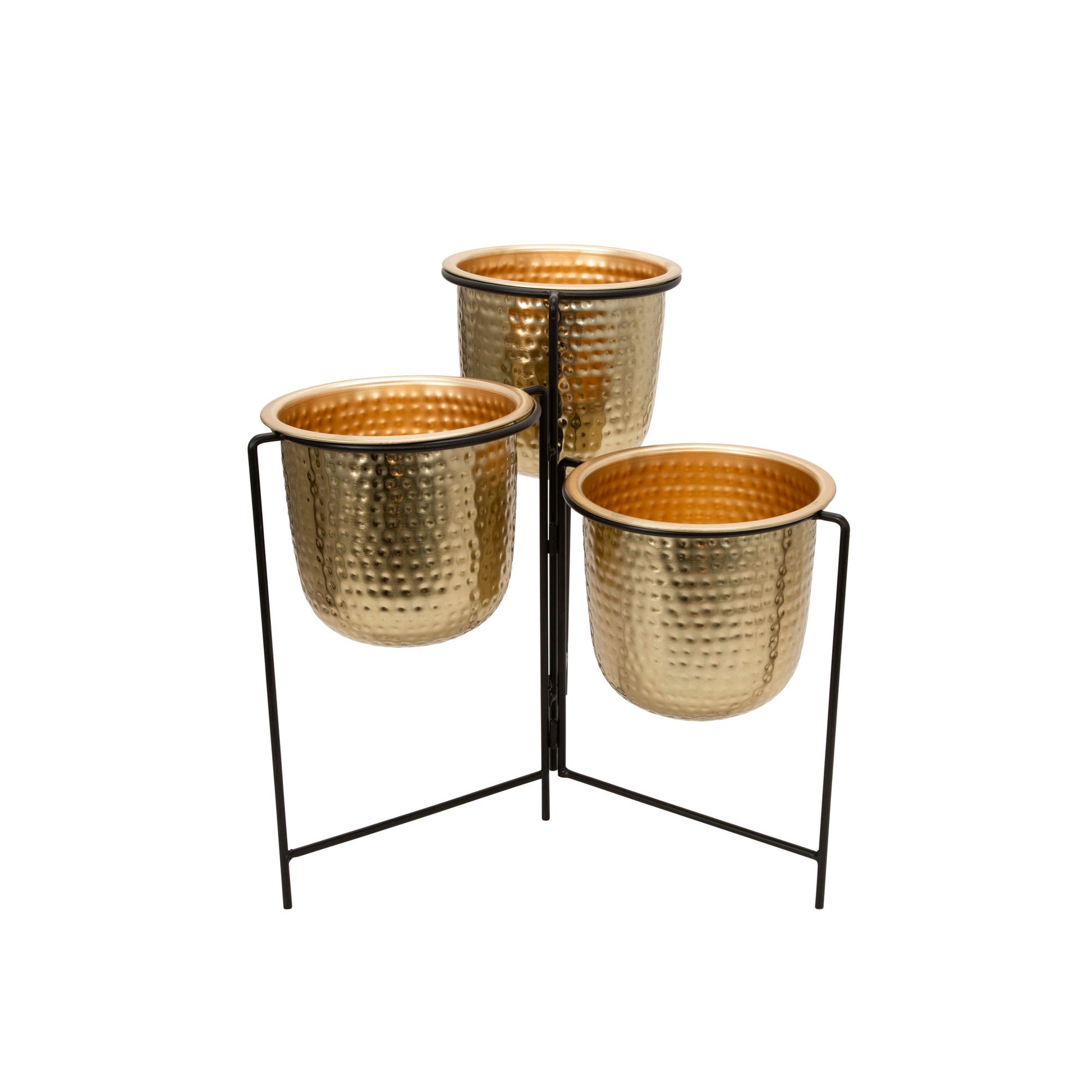 Metal 20" S/3 Hammered Planters W/ Stand, Gold