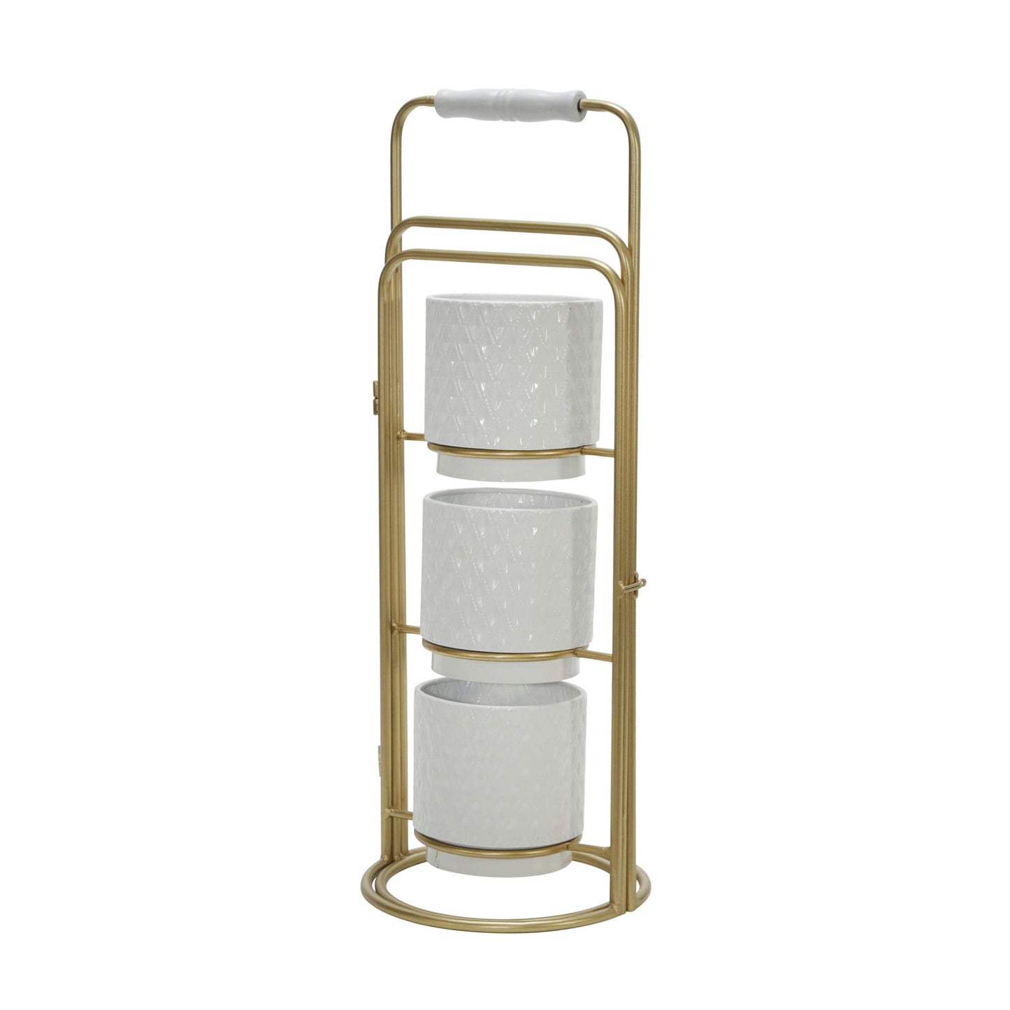 Bring a taste of the green outdoors into the comfort of your own home with just the addition of some fresh plants. Made of metal, this 3-tier planter stand is the perfect addition to your home assortment adding flair to your home. It features a stand, that allows this piece to be placed on the ground next to a desk, fireplace, or seating arrangement.