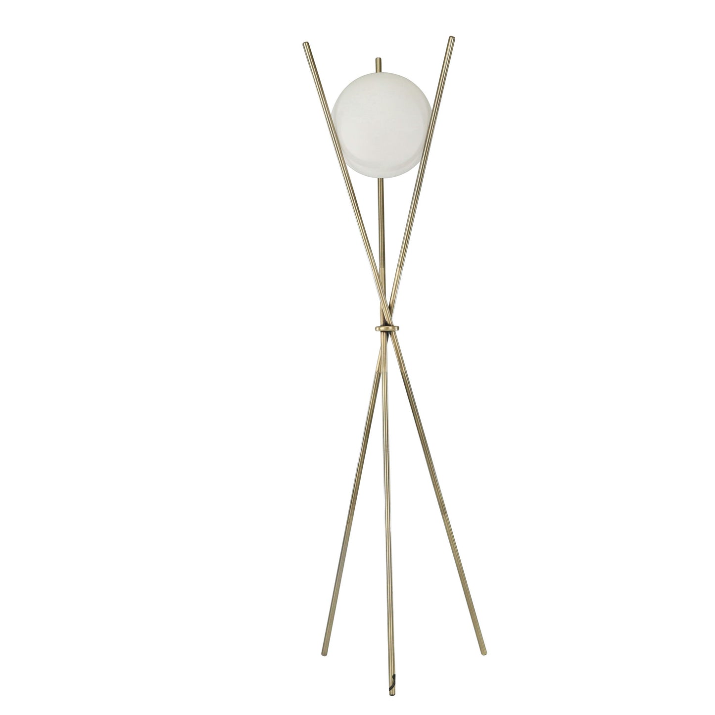 This rusted brush gold tripod metal floor lamp transforms decor motifs from retro to contemporary. Bring an exquisite, classic retro style to your decor. Featuring a gold with hints of black brush nickel finish, and a round white glass shade completes the look.Sagebrook Home has been formed from a love of design, a commitment to service and a dedication to quality. They create and import fashion forward items in the most popular design styles. Backed with years of experience in the textile field, They are now providing a complete Home decor story. the combination of wall decor, furniture, lighting and Home accessories are all coordinated with textiles to provide a complete Home look. Sagebrook Home is committed to providing the best Home decor and accent pieces at value prices.