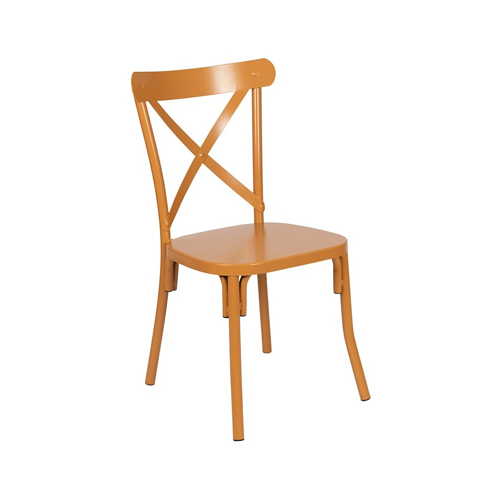 Add a comfortable, welcoming look to your restaurant, bistro or your dining room table with this natural finished metal cross back chair. This versatile chair will work well in any design scheme from farmhouse to open concept to industrial. Pair this X-back chair with any style dining table for a chic, eclectic look that adds a unique design element. Chair arrives fully assembled making setup quick and easy. Ultra-strong, this steel dining chair holds up to 500 pounds to accommodate most users. This cross back dining chair features welded joint assembly for strength and a powder coated frame for long-lasting durability. Plastic floor glides will protect your flooring from damage and ensure smooth movement. Use this chair as a standalone for extra guest seating, add another for a cozy conversation area or purchase enough to fill the spaces around your dining table. Spills clean easily with a water based cleaner. No matter what your design style, this metal X-back kitchen dining chair will be a crowd pleaser. [XU-DG-60699-NAT-GG]