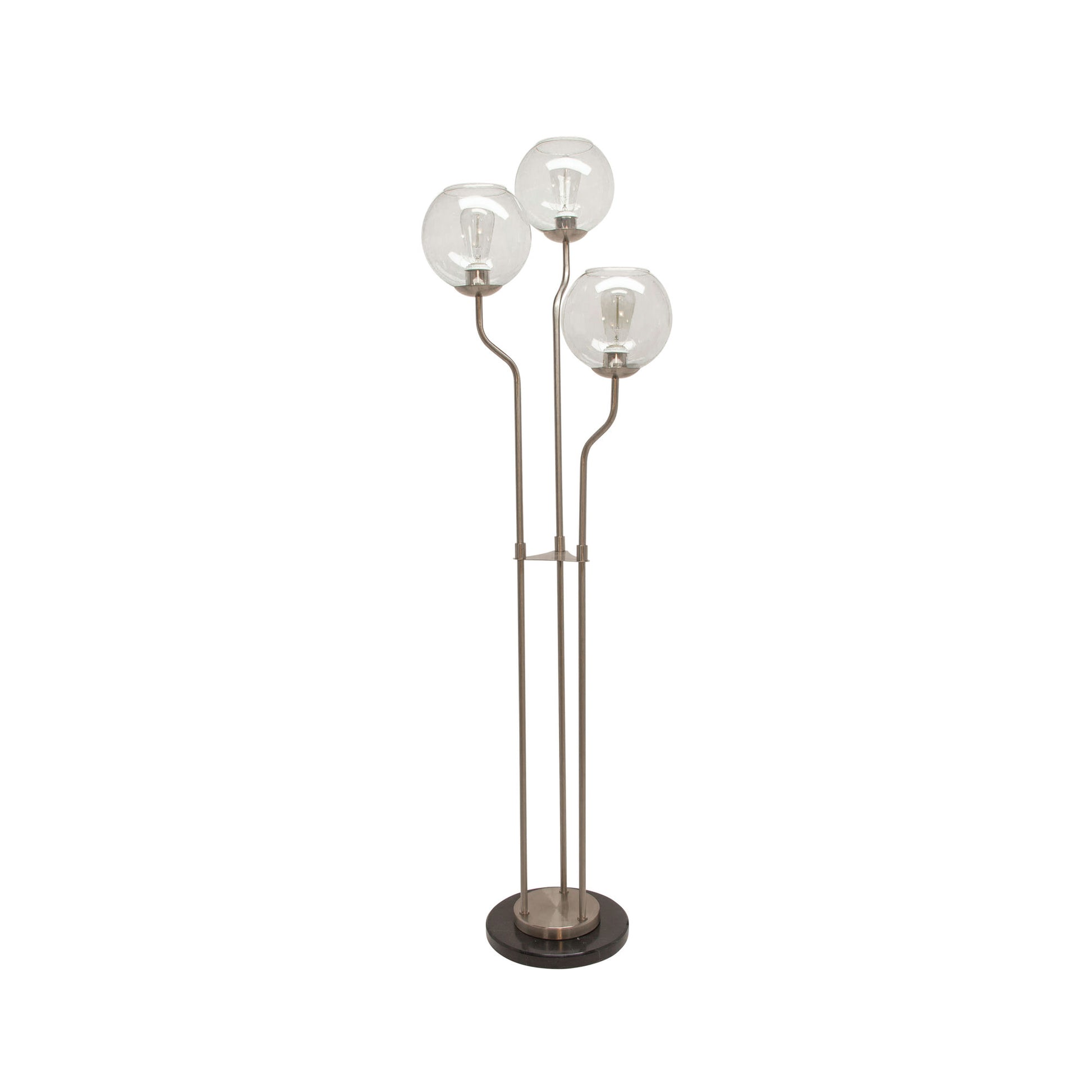 Bring style to your home with this refined 53" floor lamp. Featuring a silver body to enhance the pristine transitional design. With clear sphere shades to add curves to your home interior, and a black marble base for enhanced elegance. Made to give your home a warm glow during the evening with your family.