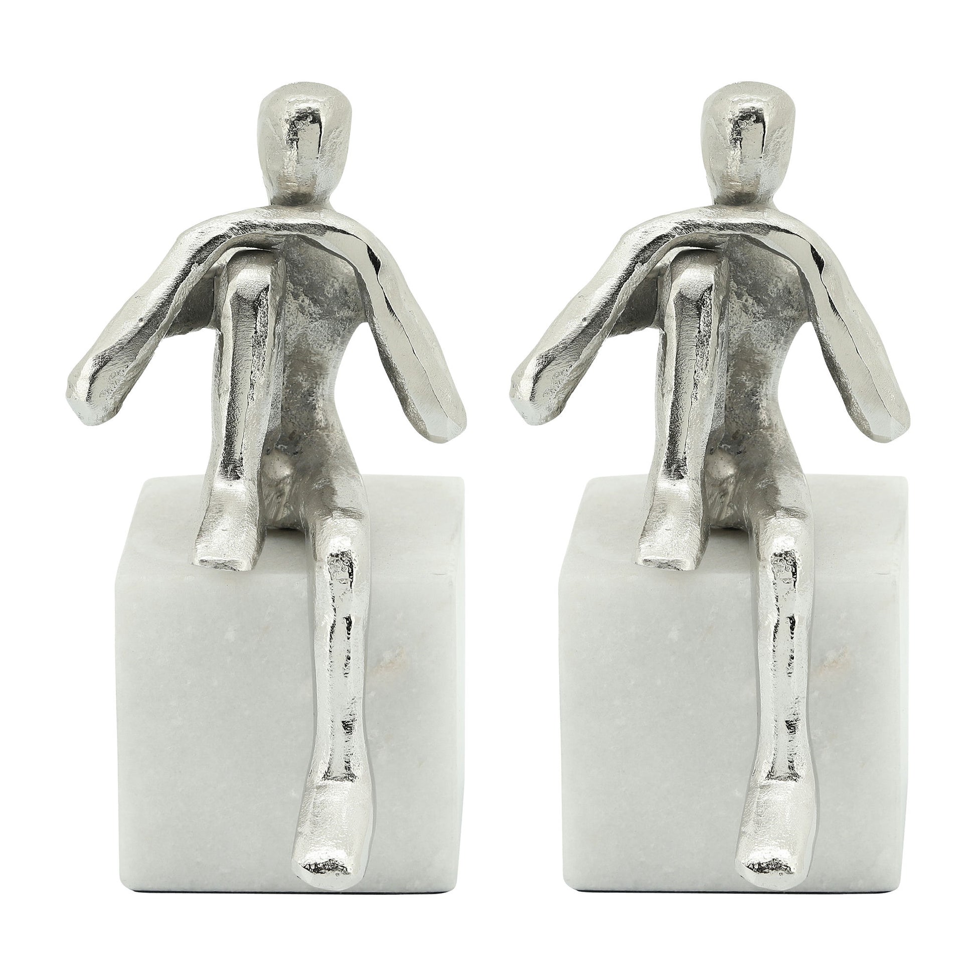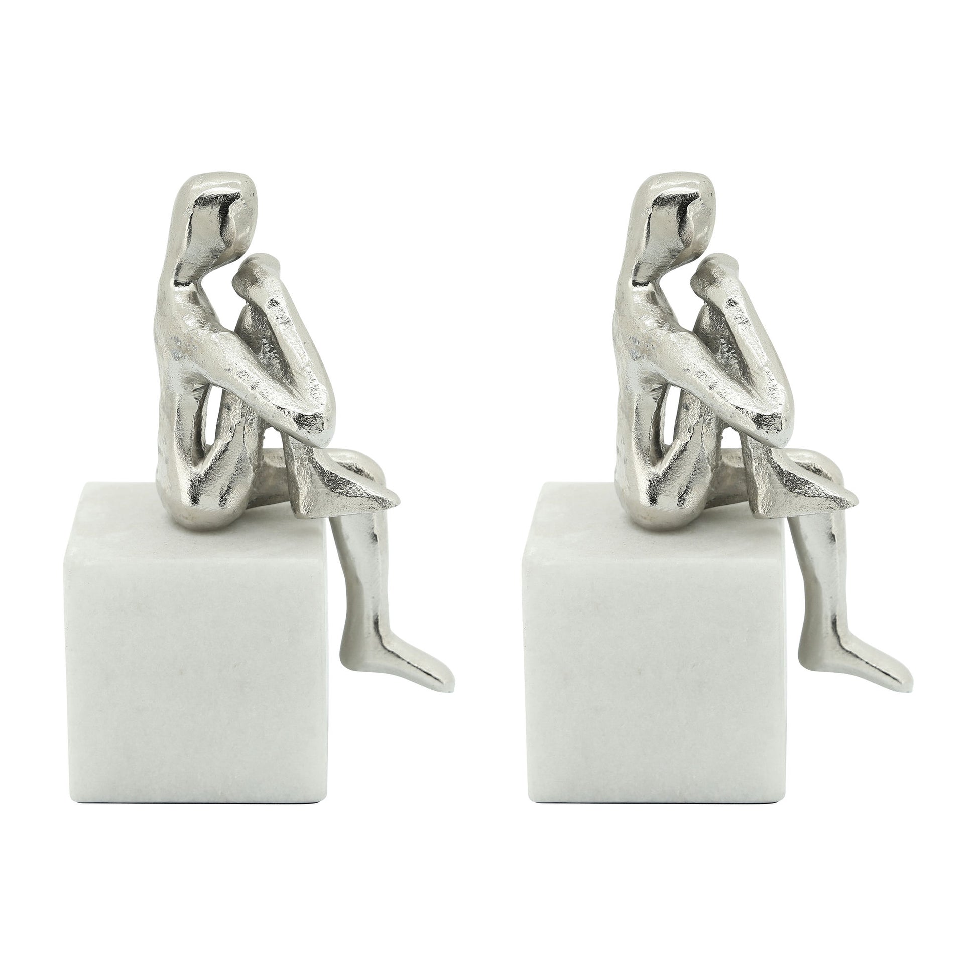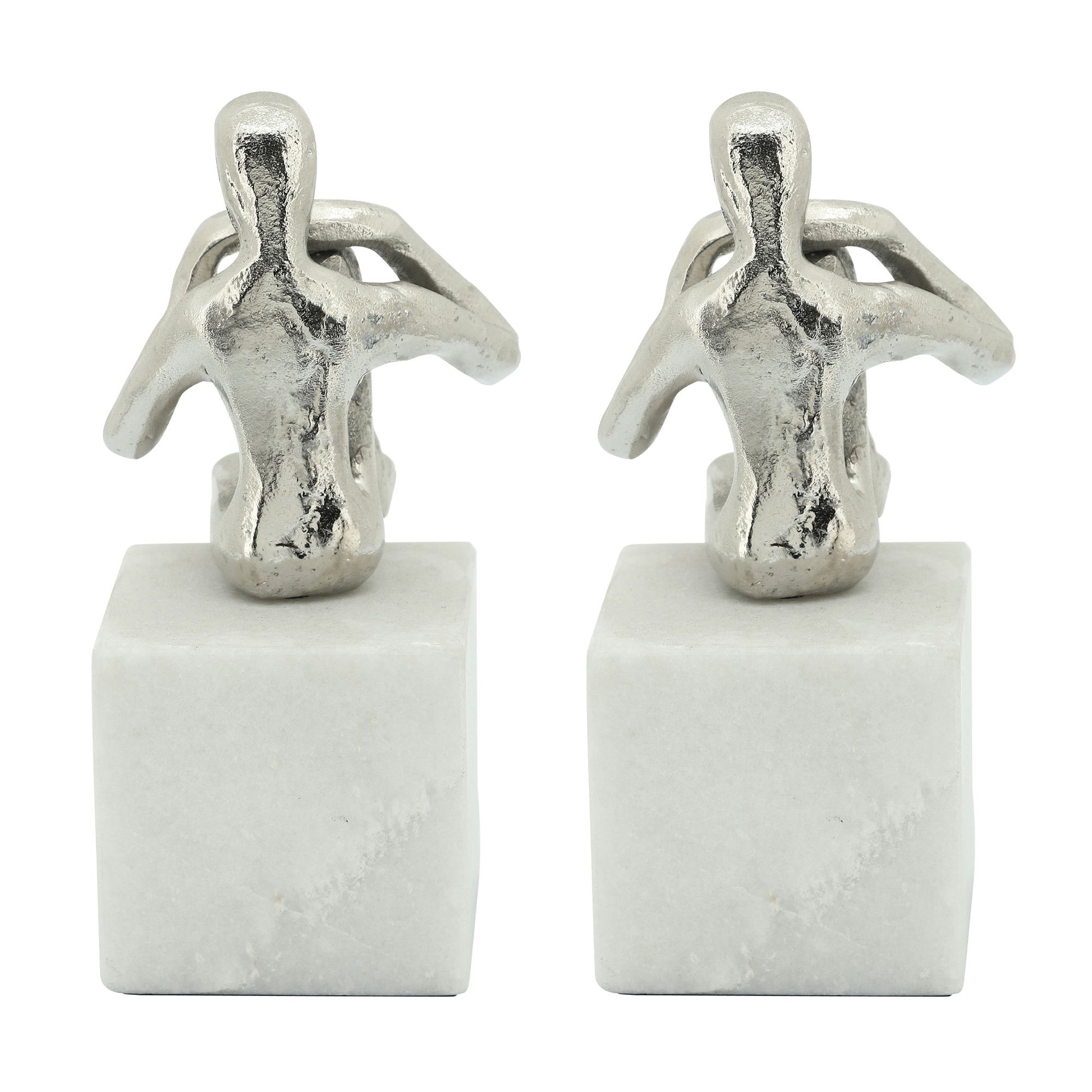 Metal/marble S/2 Sitting Leg Up Bookends, Silver