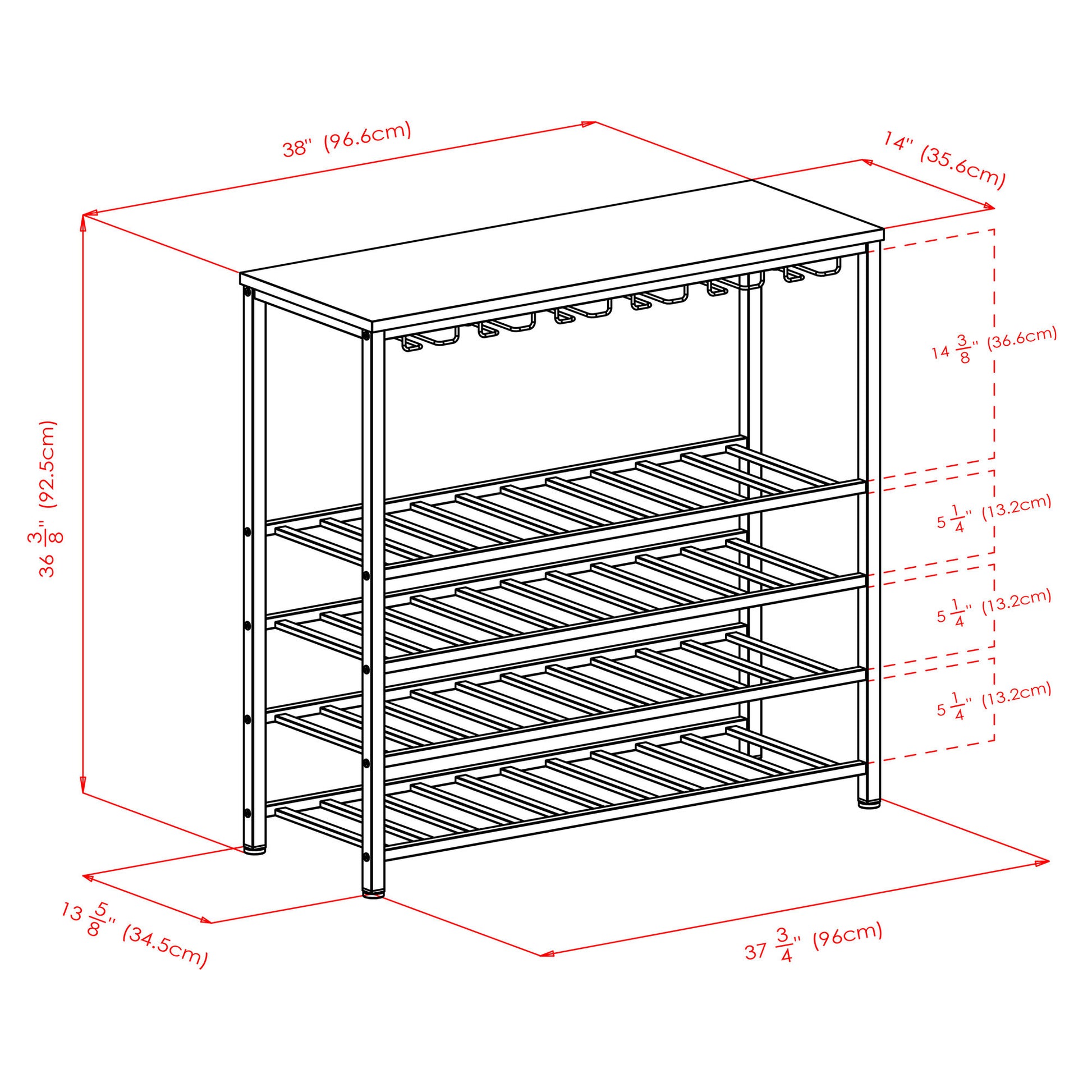 - The overall size of the wine rack is 38"W x 14"D x 26.4"H.