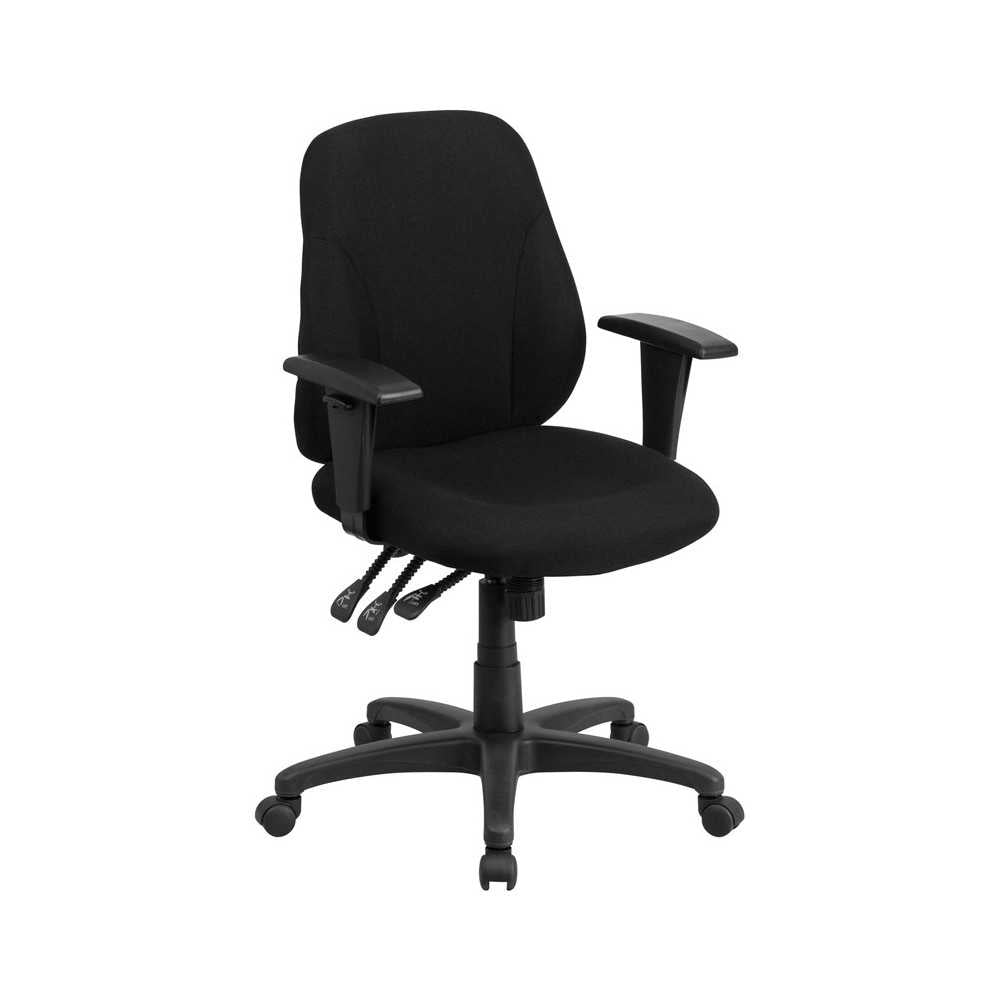 Mid-Back Black Fabric Multifunction Swivel Ergonomic Task Office Chair with Adjustable Arms
