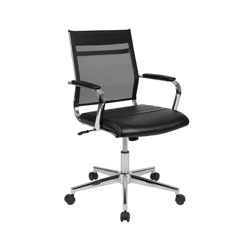 Mid-Back Black Mesh Contemporary Executive Swivel Office Chair with LeatherSoft Seat