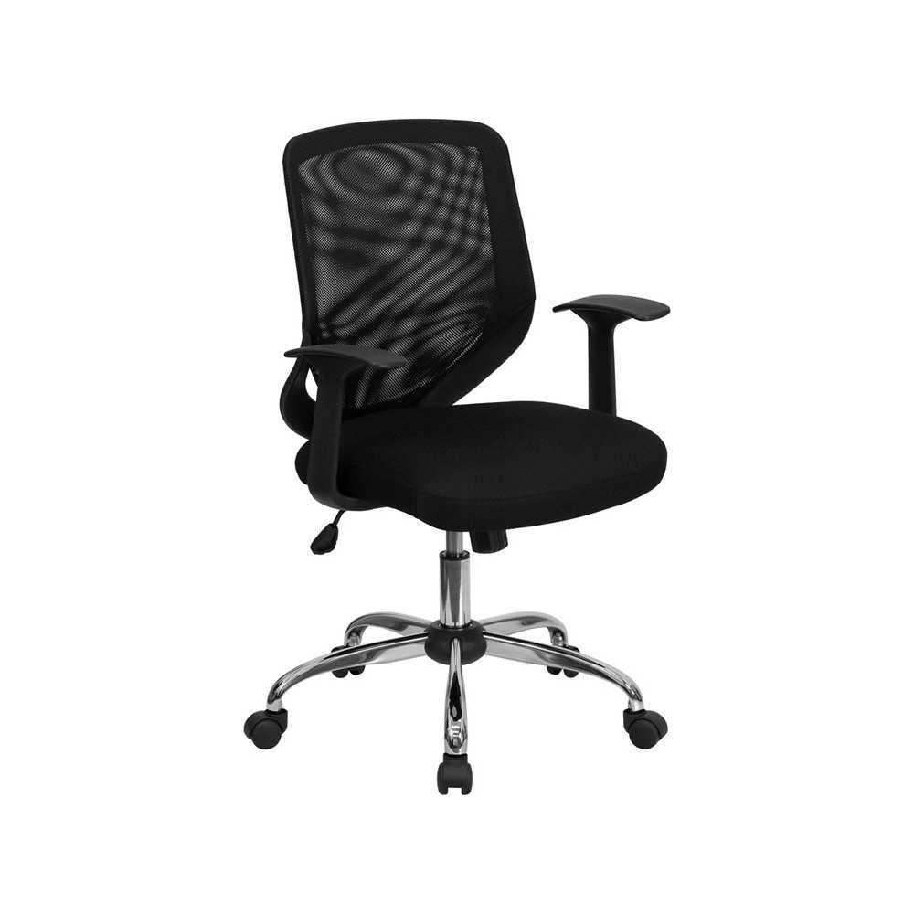 Mid-Back Black Mesh Tapered Back Swivel Task Office Chair with Chrome Base and T-Arms
