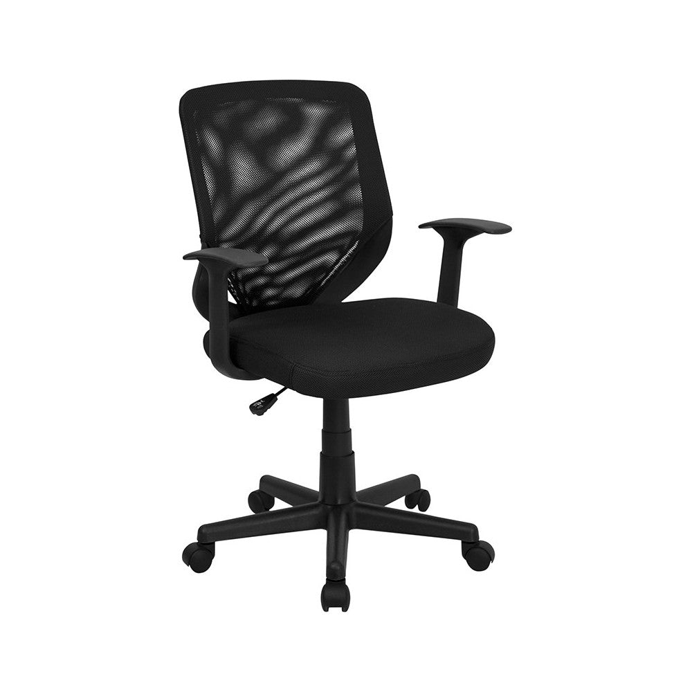 Mid-Back Black Mesh Tapered Back Swivel Task Office Chair with T-Arms