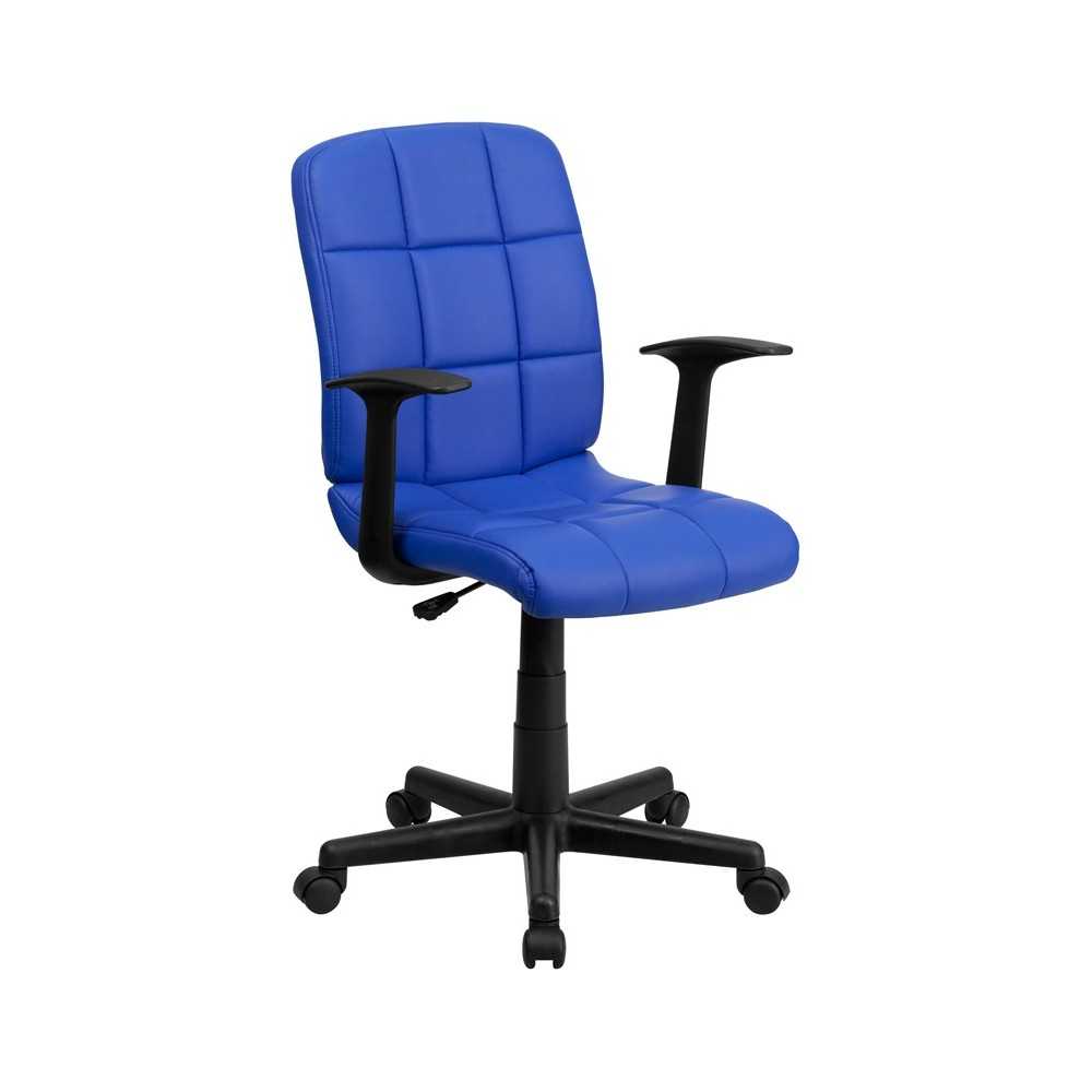 Mid-Back Blue Quilted Vinyl Swivel Task Office Chair with Arms