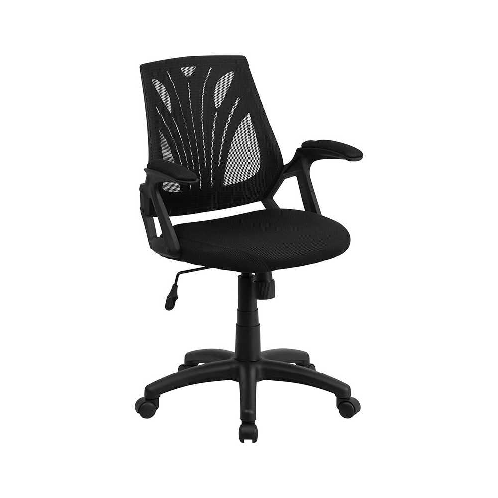 Mid-Back Designer Black Mesh Swivel Task Office Chair with Open Arms