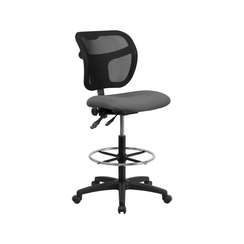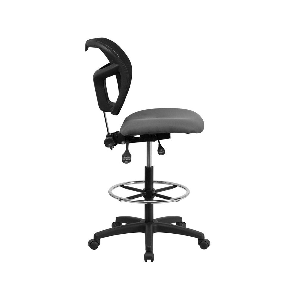 Mid-Back Gray Mesh Drafting Chair with Back Height Adjustment