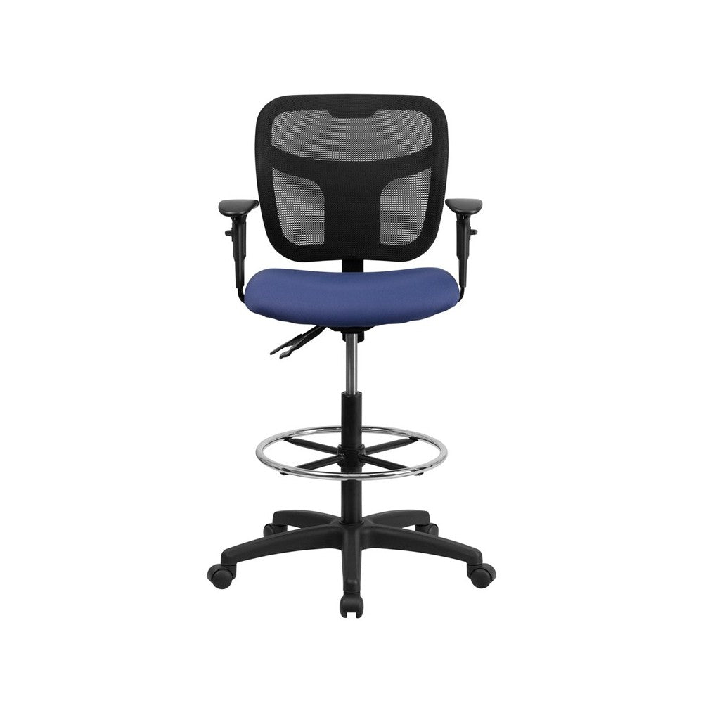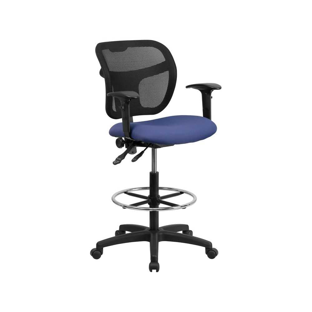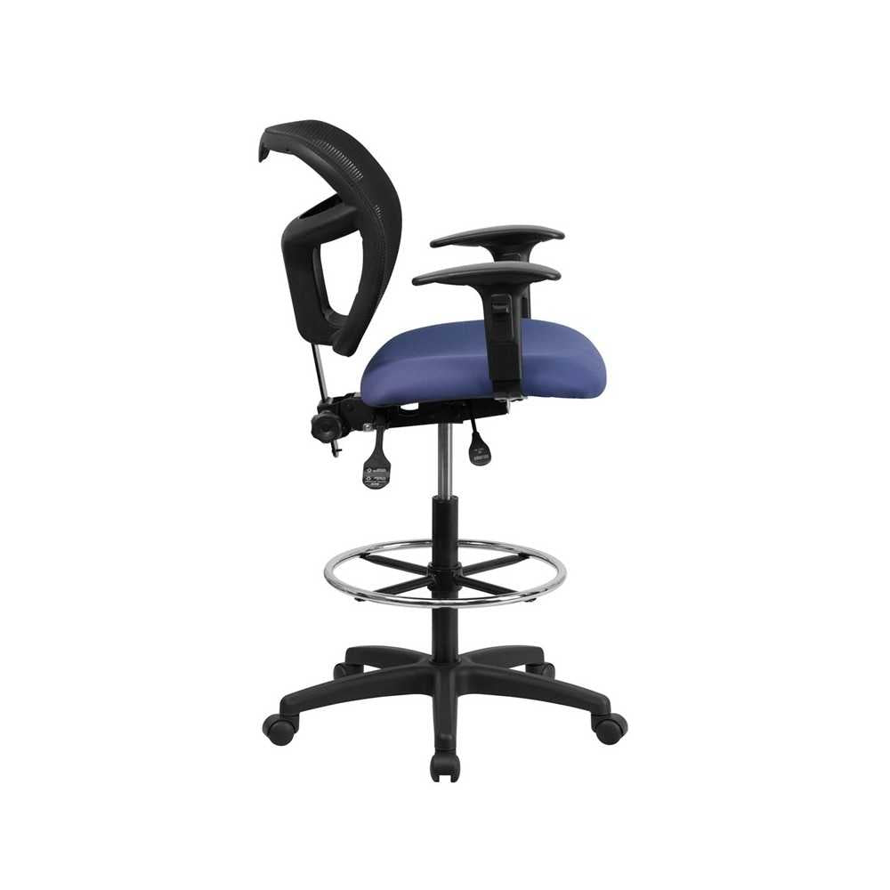 Mid-Back Navy Blue Mesh Drafting Chair with Back Height Adjustment and Adjustable Arms