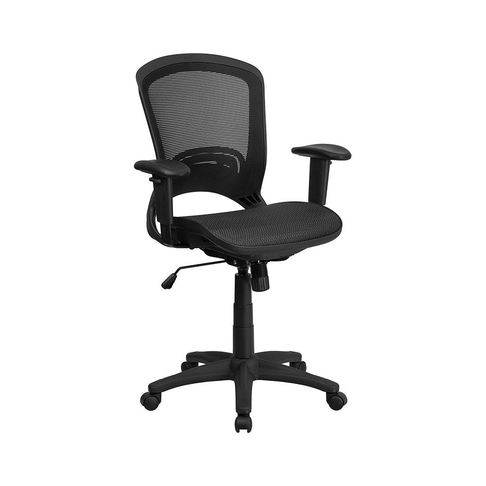 Mid-Back Transparent Black Mesh Executive Swivel Office Chair with Adjustable Arms