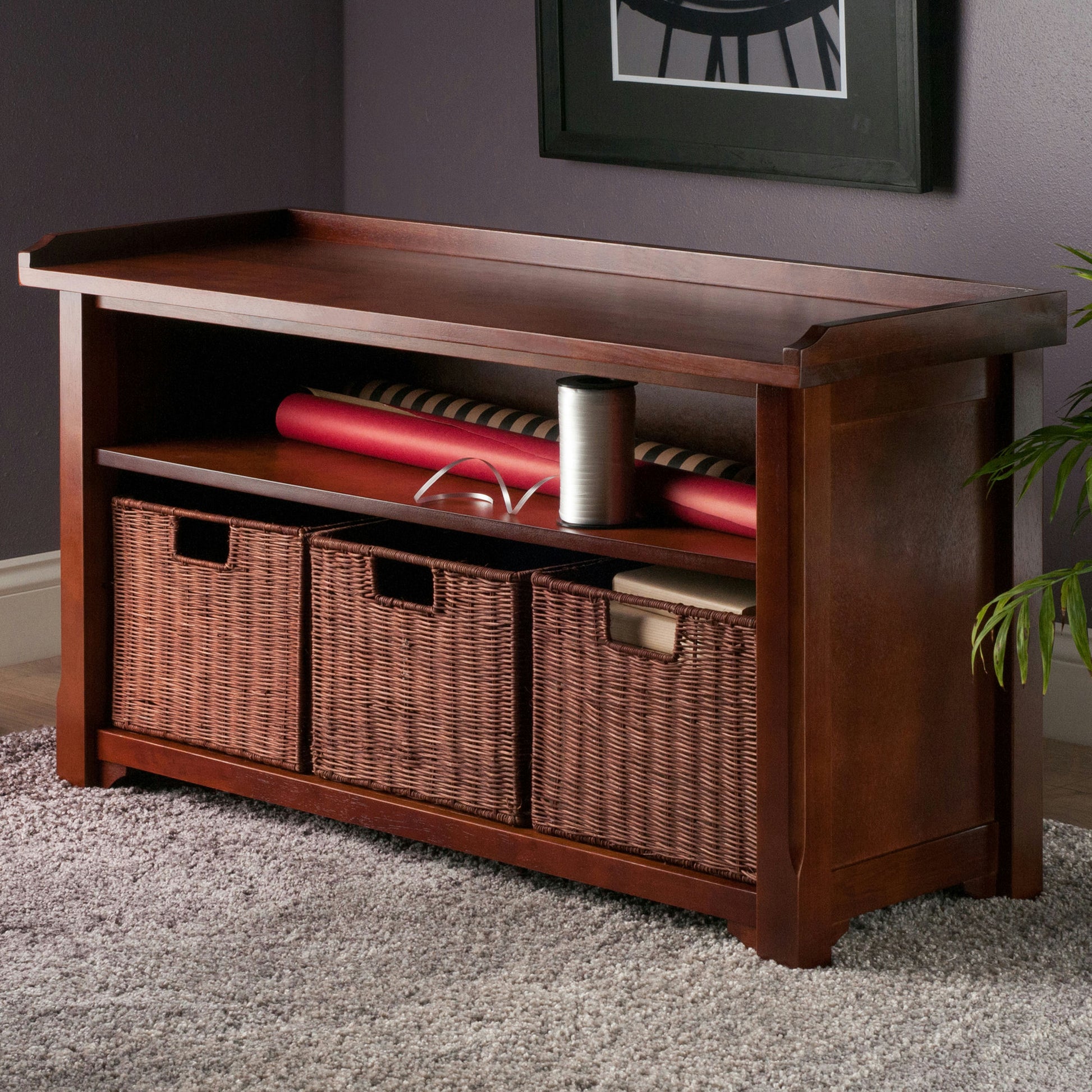 Milan 4-Pc Storage Bench with 3 Wicker Baskets, Walnut