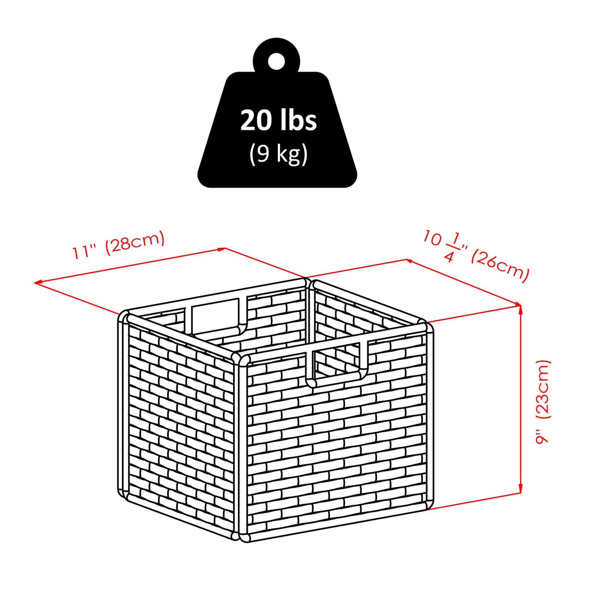 - Shelf is 34.49"W x 12.32"D x 5.51"H. Includes 3 Wire Walnut Baskets 11"W x 10"D x 9"H.