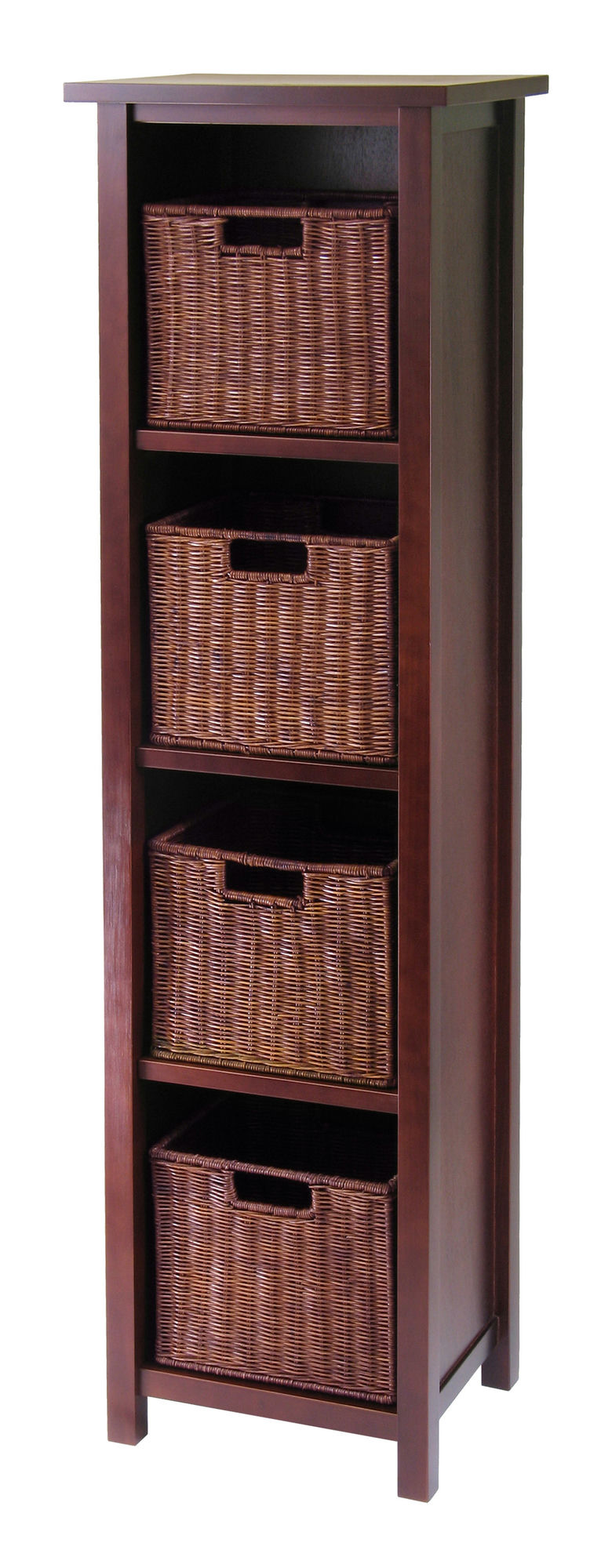Milan 5-Pc Storage Shelf with 4 Wicker Baskets, Walnut