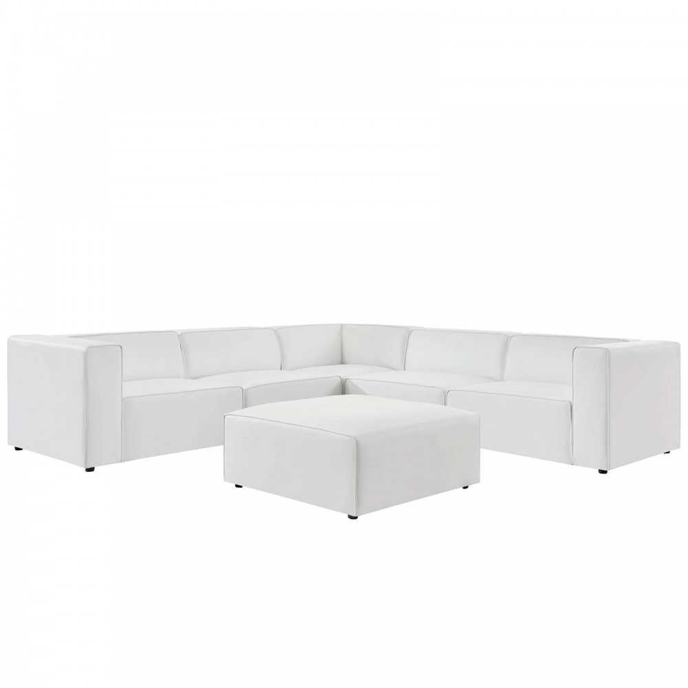 Kick back and relax with the Mingle Vegan Leather 6-Piece Furniture Set. Designed to wash away the hindrances that obstruct visual space, this living room furniture set comes expansively designed with generous seating and dense foam padding that allows for just the right amount of giving. Mingle easily positions according to the needs of the moment and features rich vegan leather upholstery with elegant piping and plastic legs for steady support. Host animated living or lounge room get-togethers with a modular sectional sofa seating assortment perfect for contemporary modern décors. Set Includes: Left-Arm Chair, Right-Arm Chair, Corner Chair, 2 Armless Chairs, 1 Ottoman, 1 Armchair